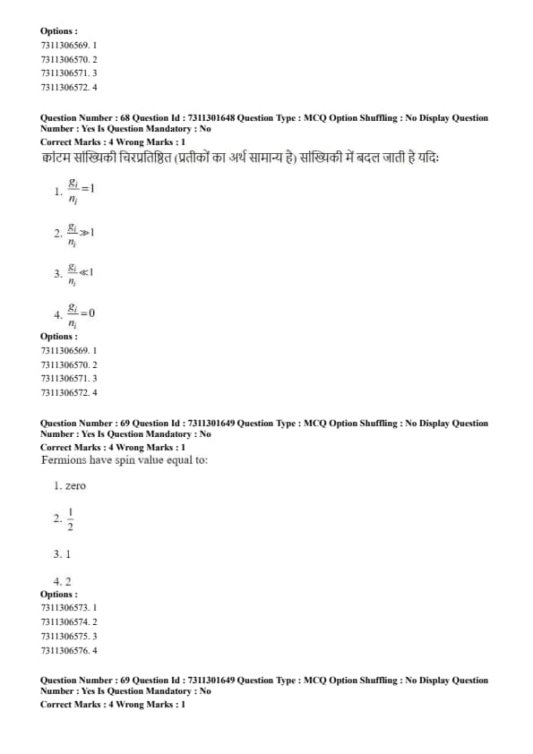 This condition corresponds to a low-density, high-temperature gas where quantum effects are negligible. Quick Tip: The classical limit is the "non-crowded" limit. If there are many more available quantum "seats" (\(g_i\)) than there are particles (\(n_i\)) to sit in them, the particles are unlikely to interact in a way that requires quantum rules, so classical statistics work fine.