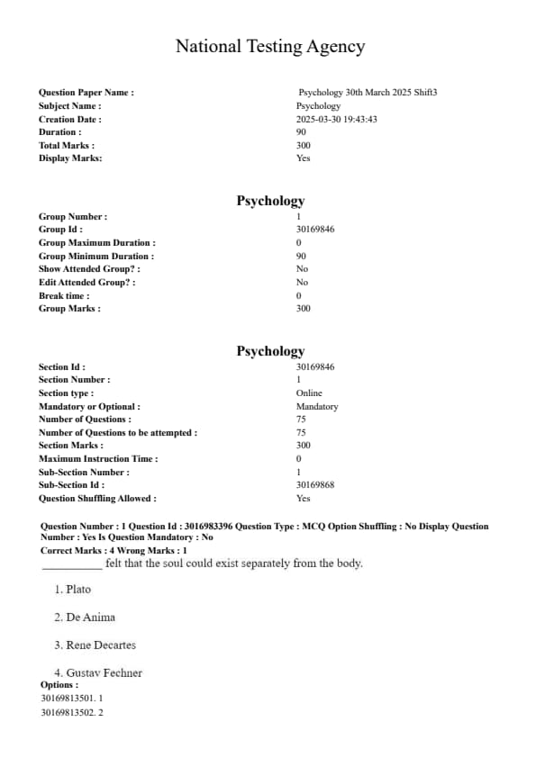 The CUET PG Psychology exam 2025 was conducted on 30th March 2025 during Shift 3. Candidates can obtain the question paper, answer key, and complete solution PDFs after the exam. This paper evaluates proficiency in cognitive psychology, research methods, developmental psychology, abnormal psychology, counseling, and contemporary psychological issues.
