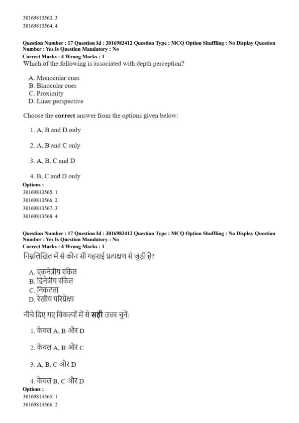 Which of the following is associated with depth perception?