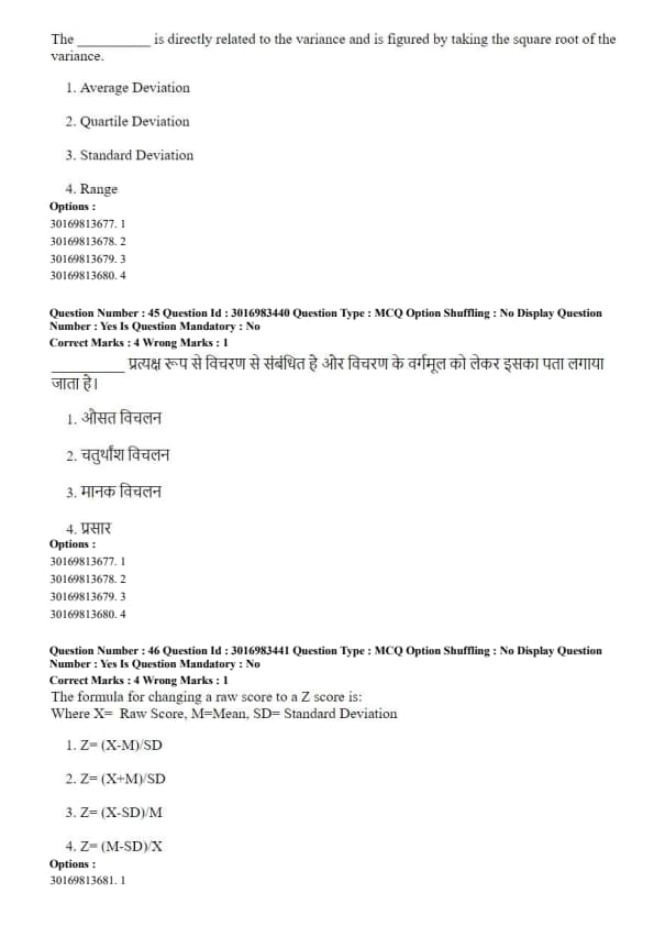 Where X= Raw Score, M=Mean, SD= Standard Deviation