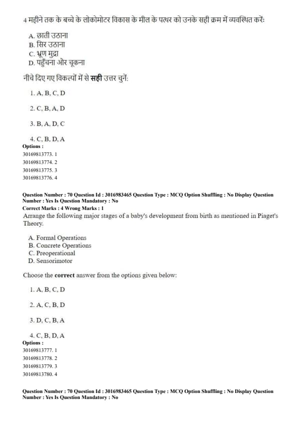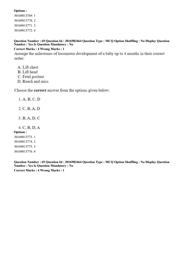 Arrange the milestones of locomotor development of a baby up to 4 months in their correct order: