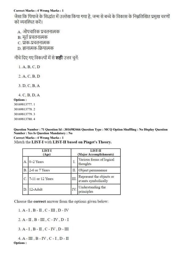 Match the LIST-I with LIST-II based on Piaget's Theory.