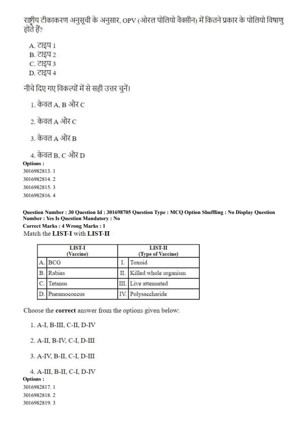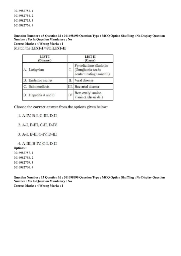 - (3) A-IV, B-I, C-II, D-III