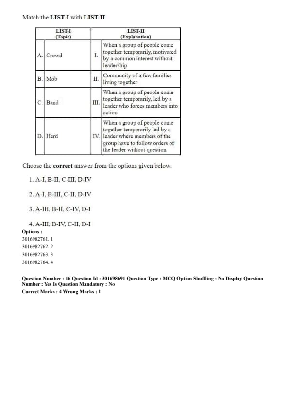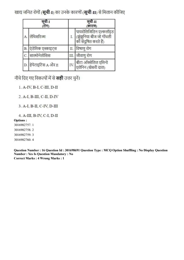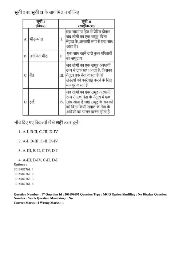 - (4) A-I, B-IV, C-III, D-II
