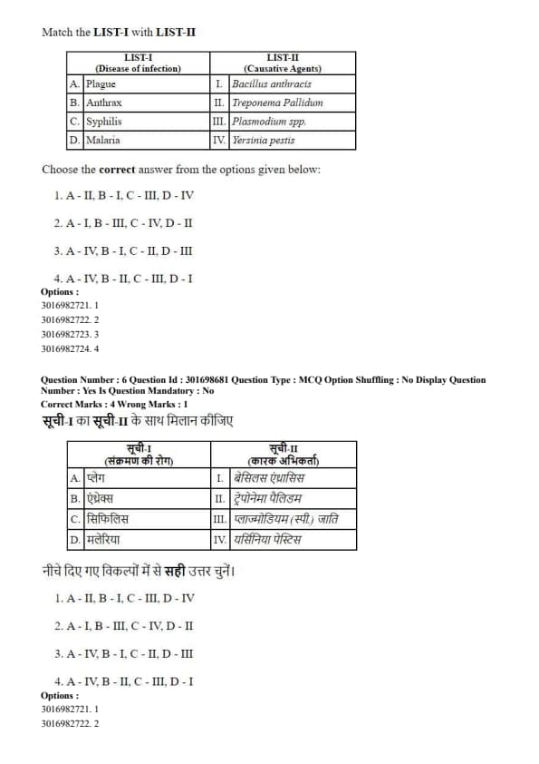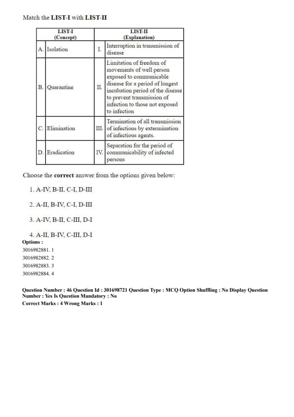 - (4) A-IV, B-II, C-III, D-I