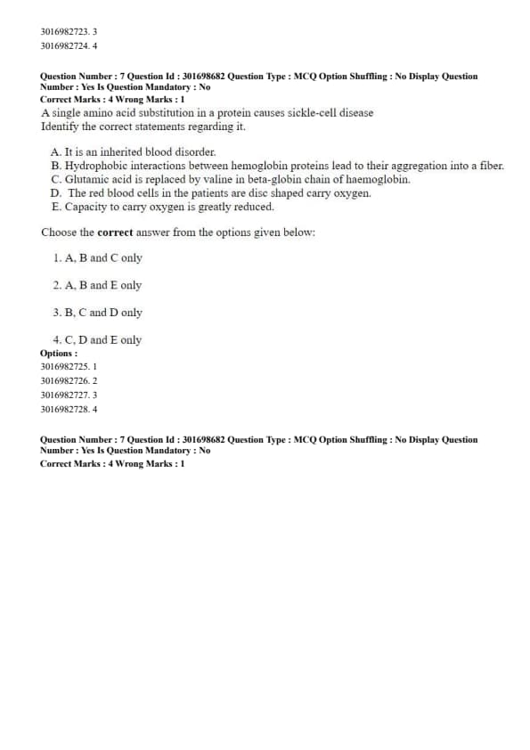 - (C) Glutamic acid is replaced by valine in beta-globin chain of haemoglobin.