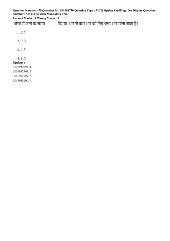 Students must attempt 75 questions in 60 minutes, for a total of 300 marks. Each correct answer is awarded 4 marks, and 1 mark is deducted for every wrong response.