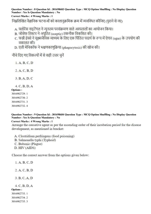 Arrange the causative agent as per the ascending order of their incubation period for the disease development, as mentioned in bracket: