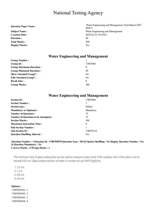 CUET PG 2025 Water Engineering and Management 2025 Question Paper with Solutions