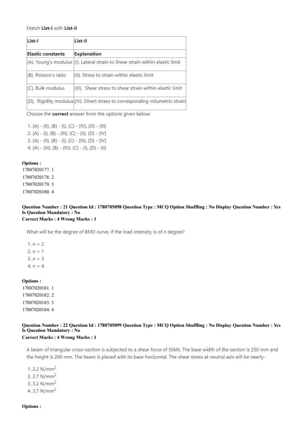 - (2) (A) - (II), (B) - (I), (C) - (III), (D) - (IV)