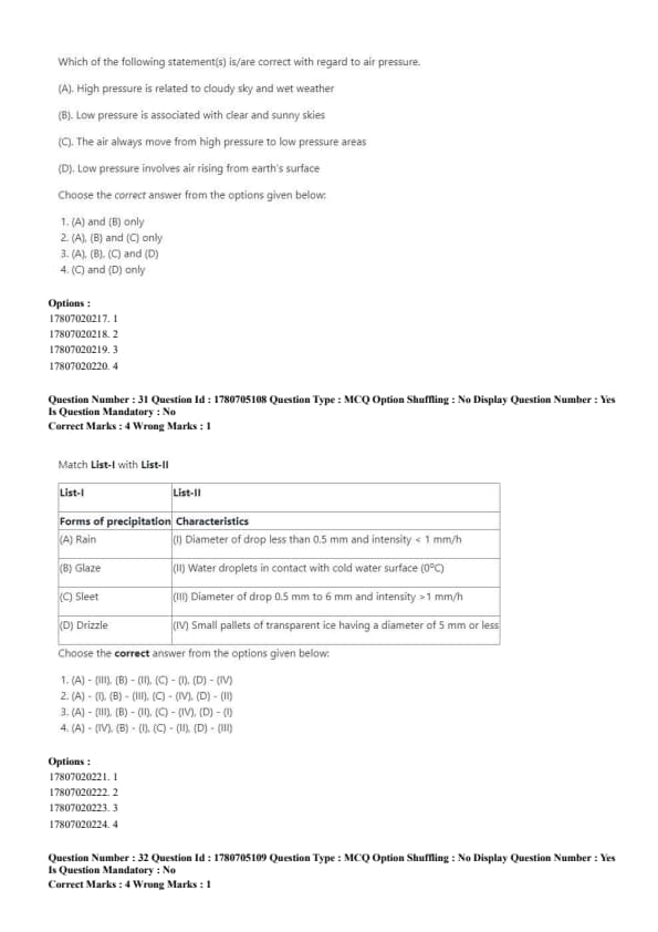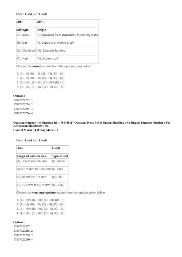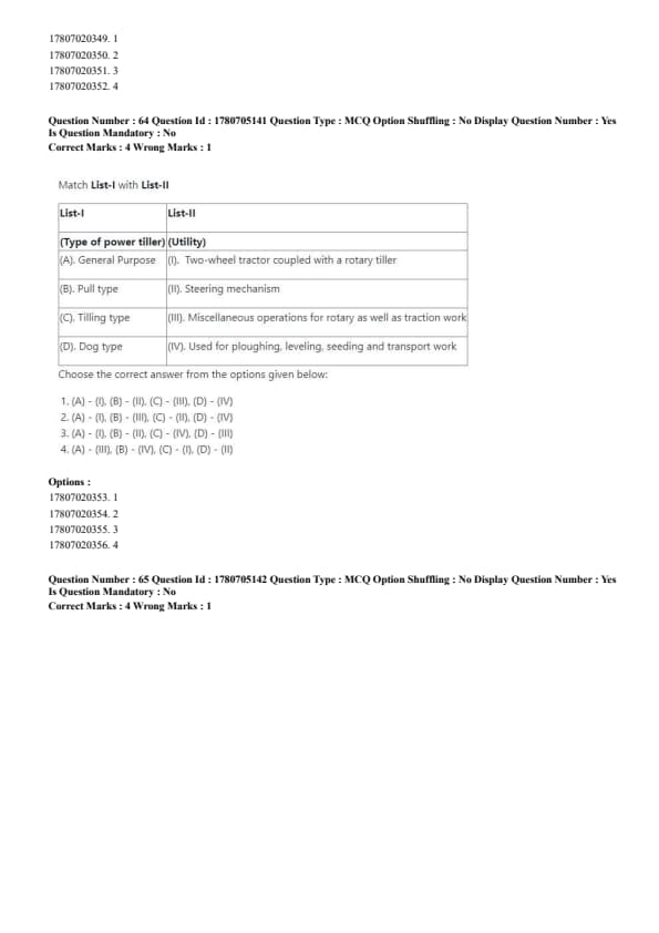 - (1) (A) - (III), (B) - (I), (C) - (II), (D) - (IV)