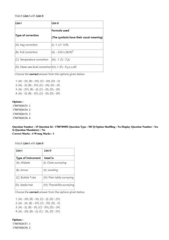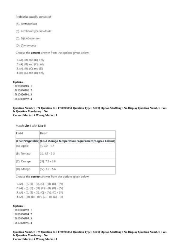 - (2) (A) - (IV), (B) - (III), (C) - (I), (D) - (II)