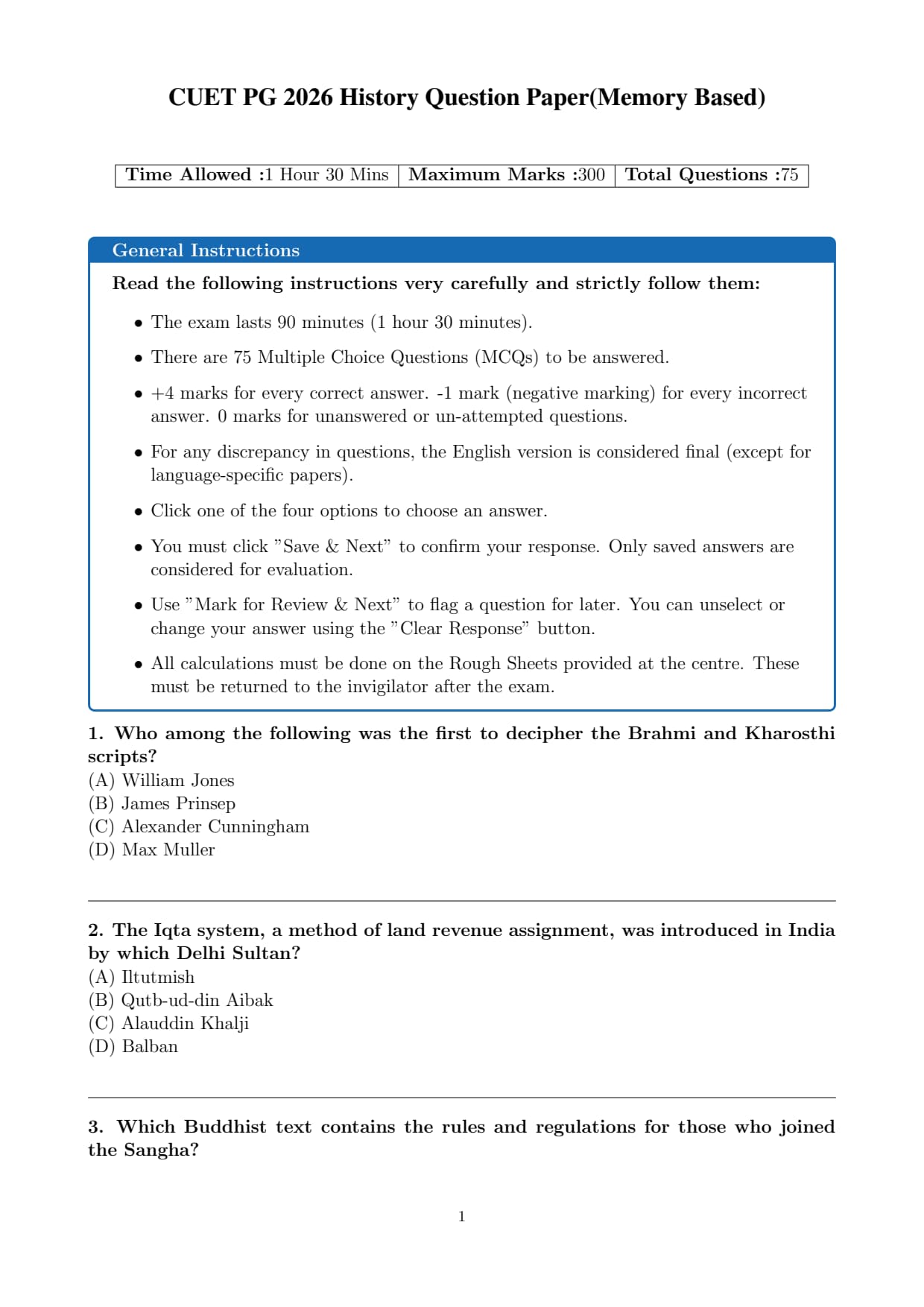 | CUET PG 2026 History Question Paper with Answer Key | Download PDF | Check Solutions |