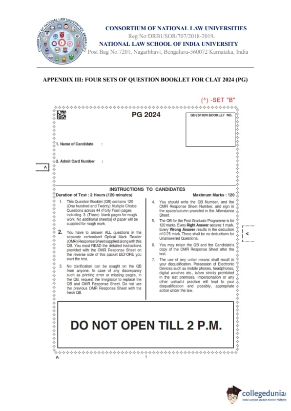 CLAT PG 2024 Question Paper with Answer Key PDF Set B