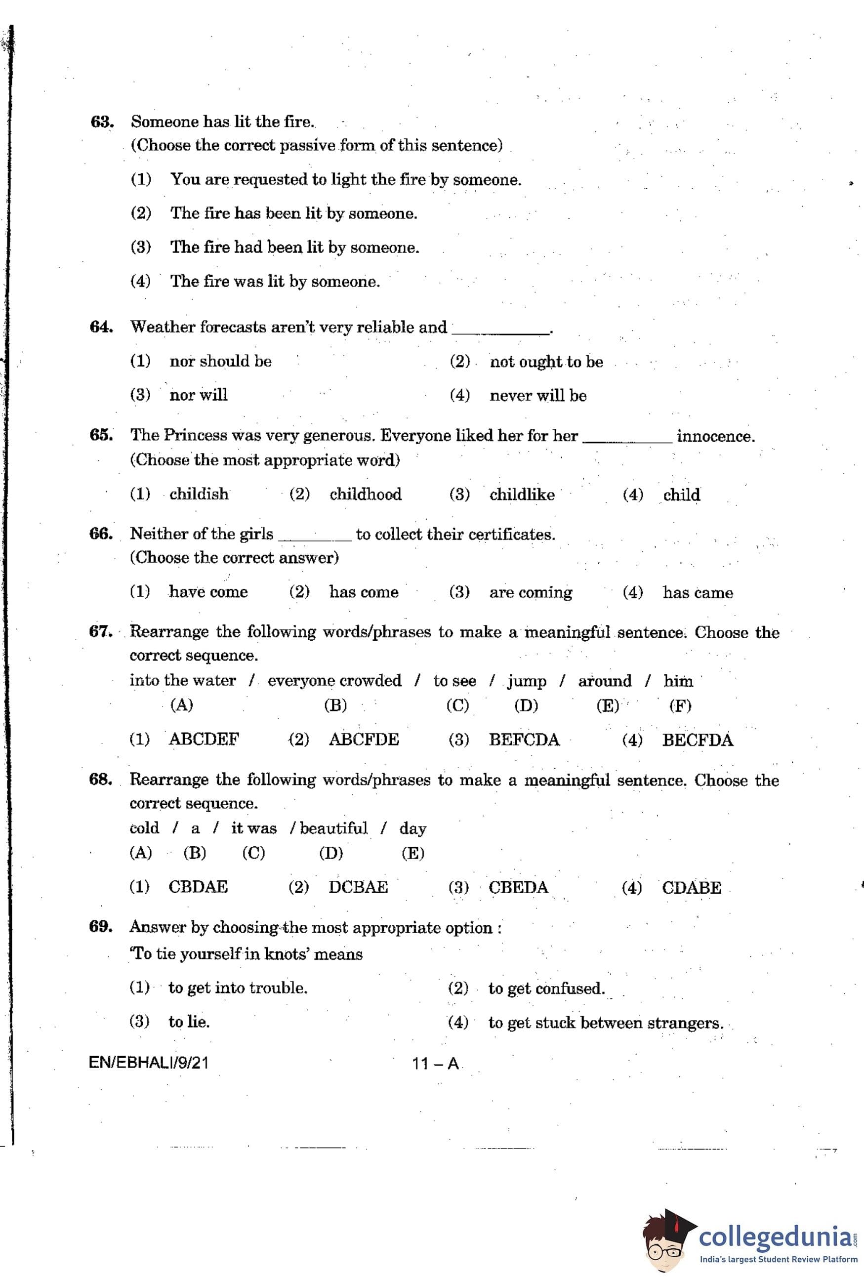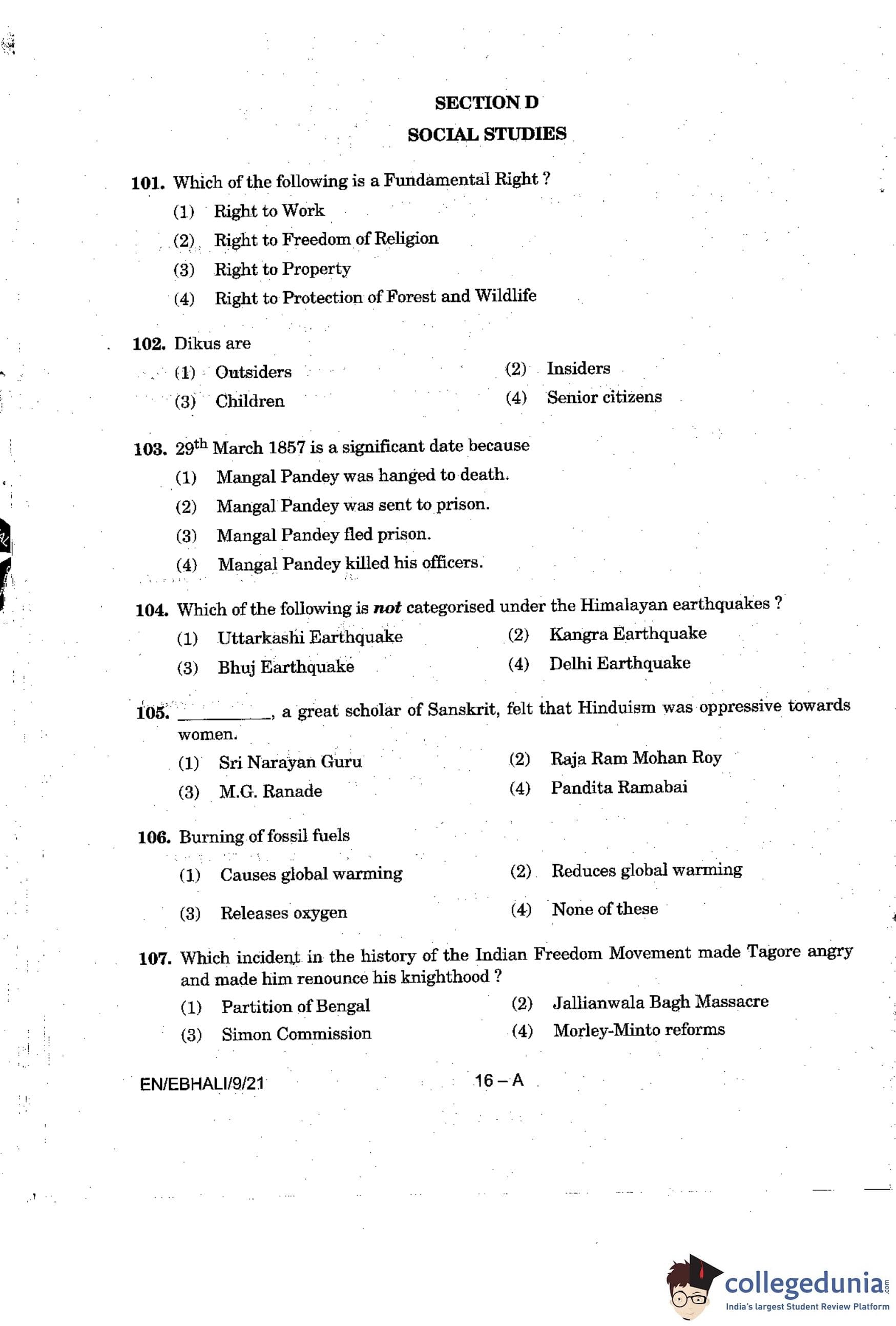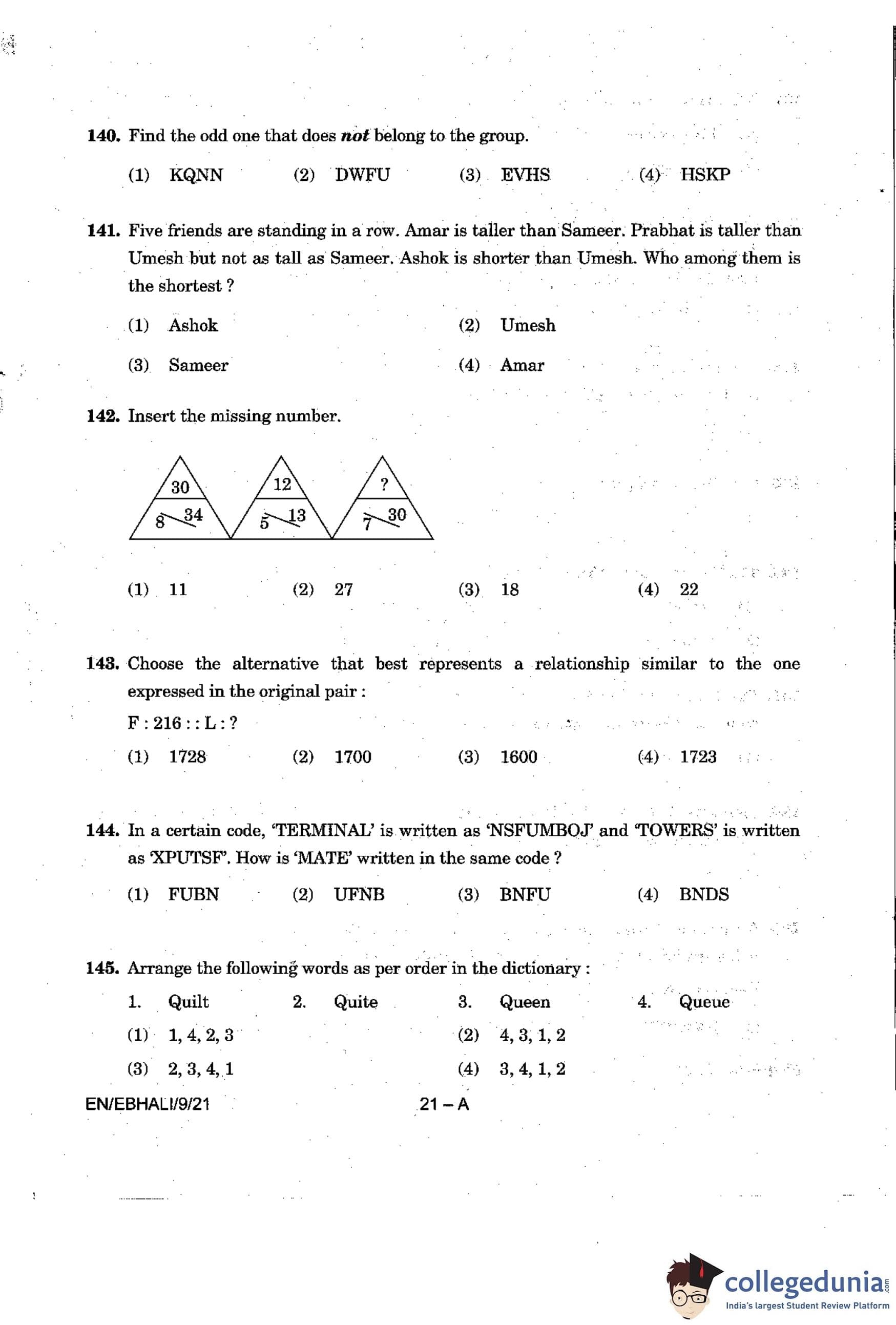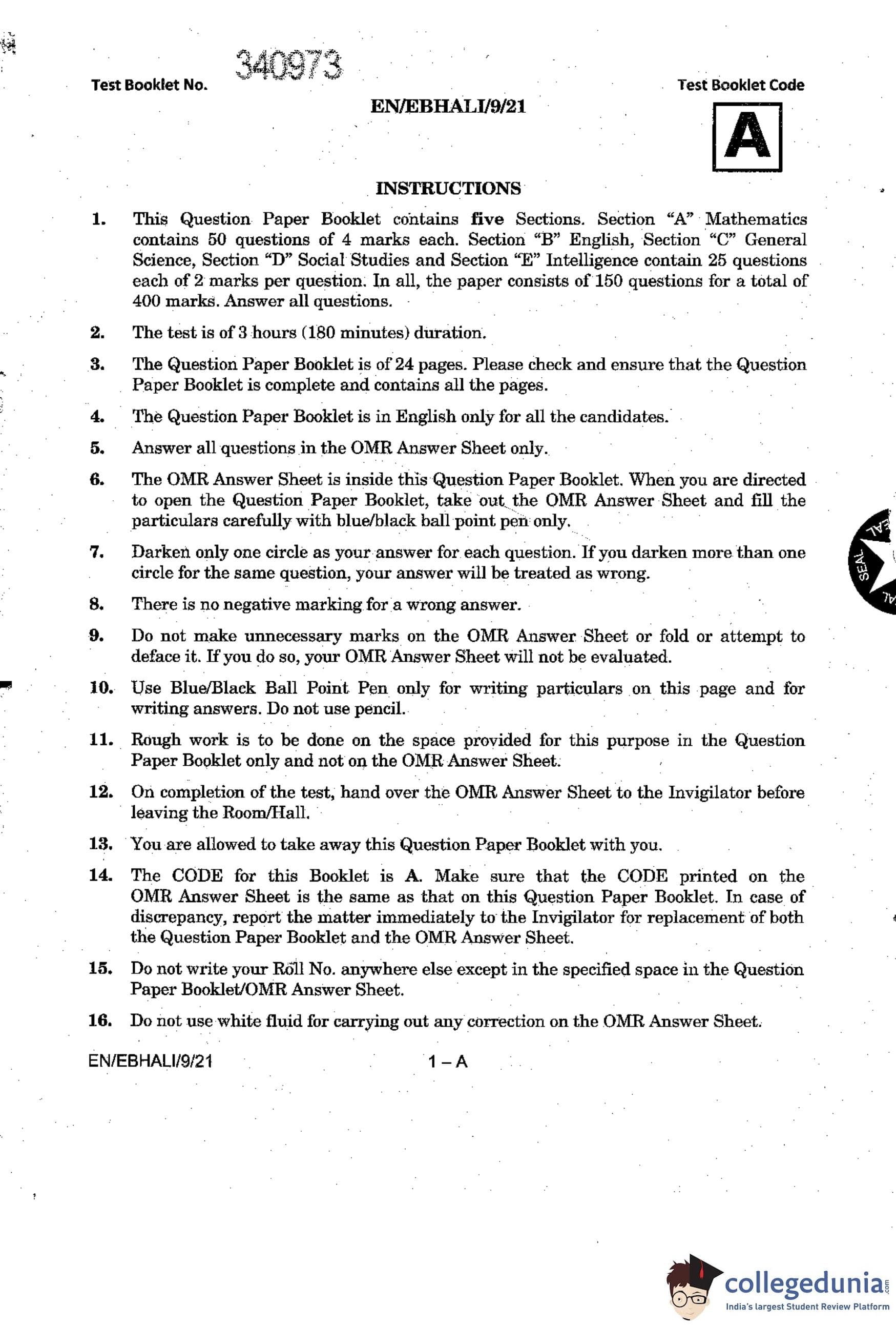AISSEE 2021 Question Paper with Answer Key Class 9 (Set A)