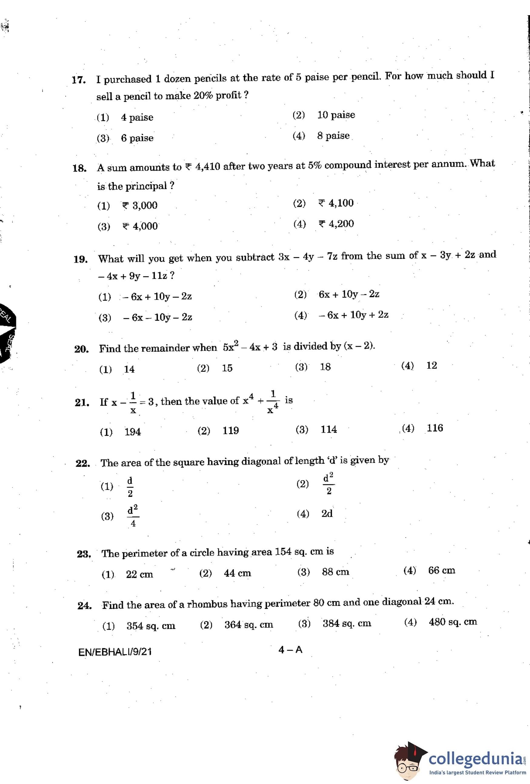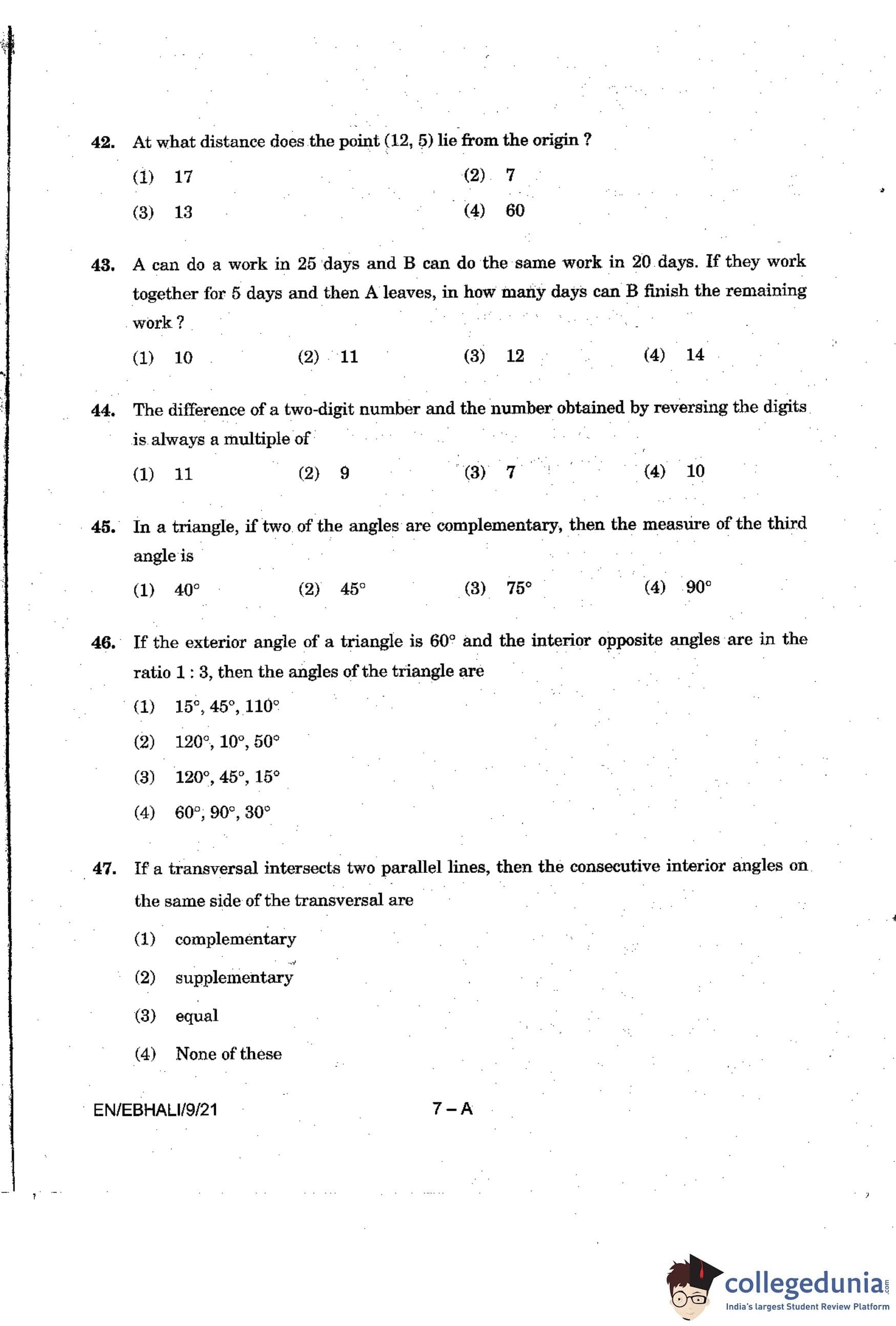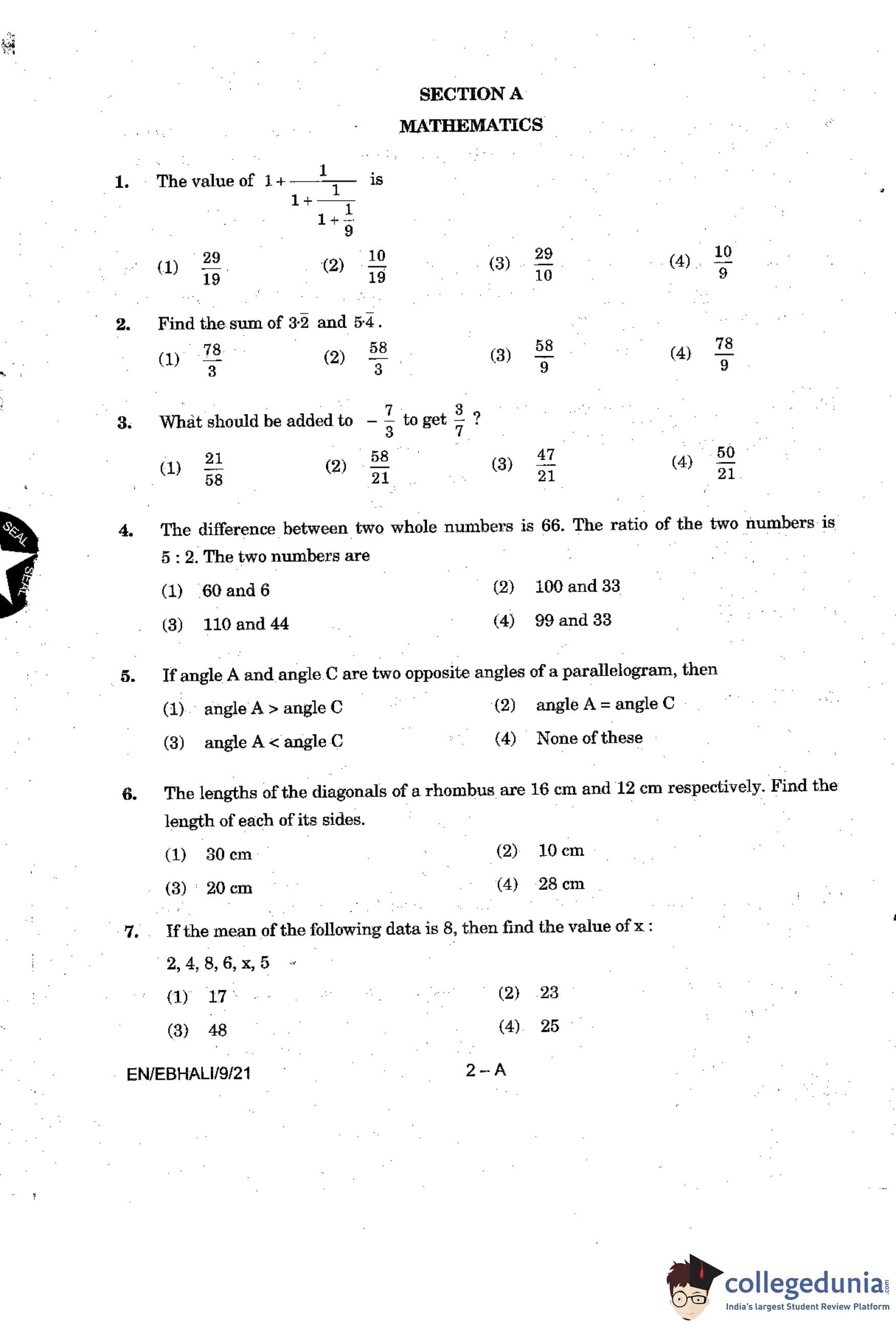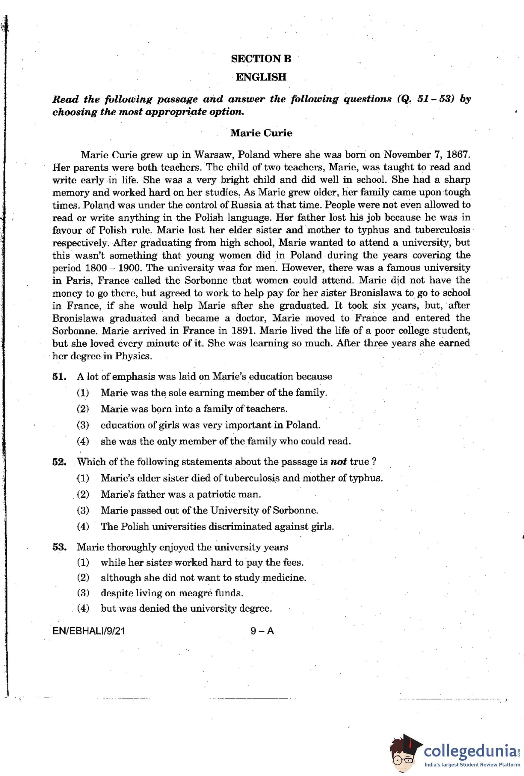 AISSEE 2021 Question Paper with Answer Key Class 9 (Set A)