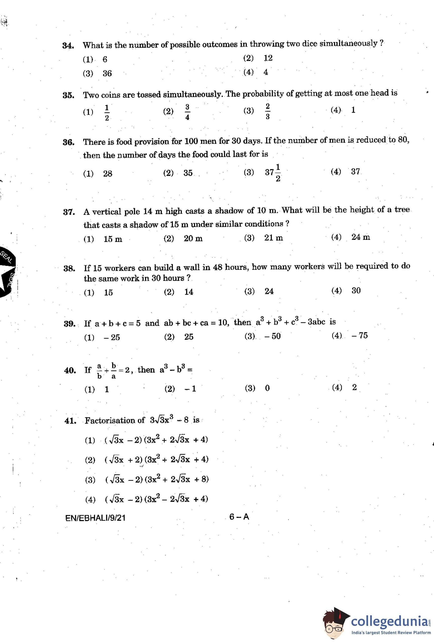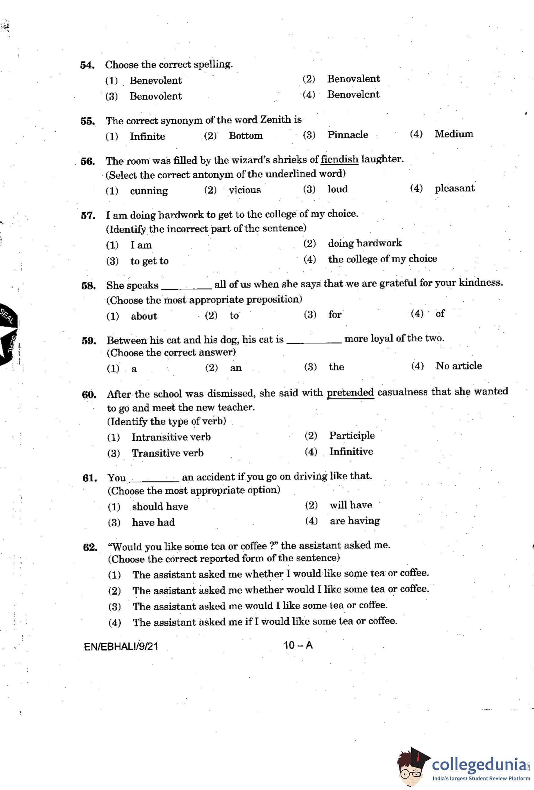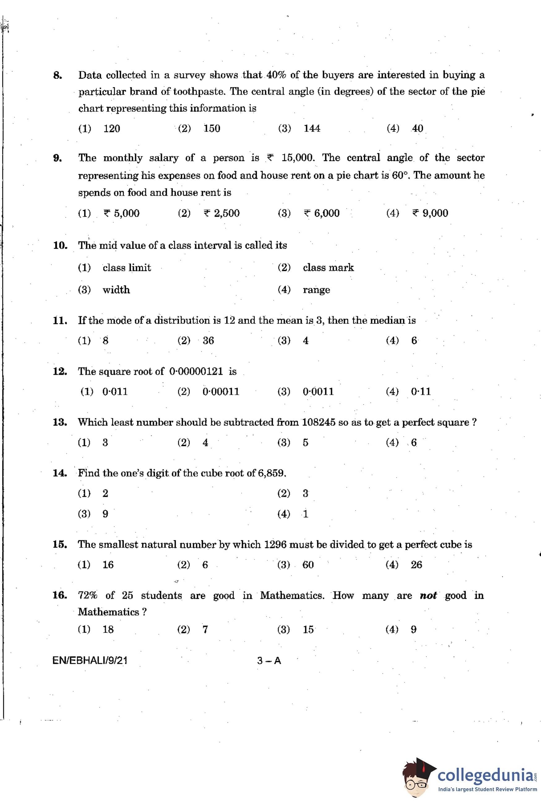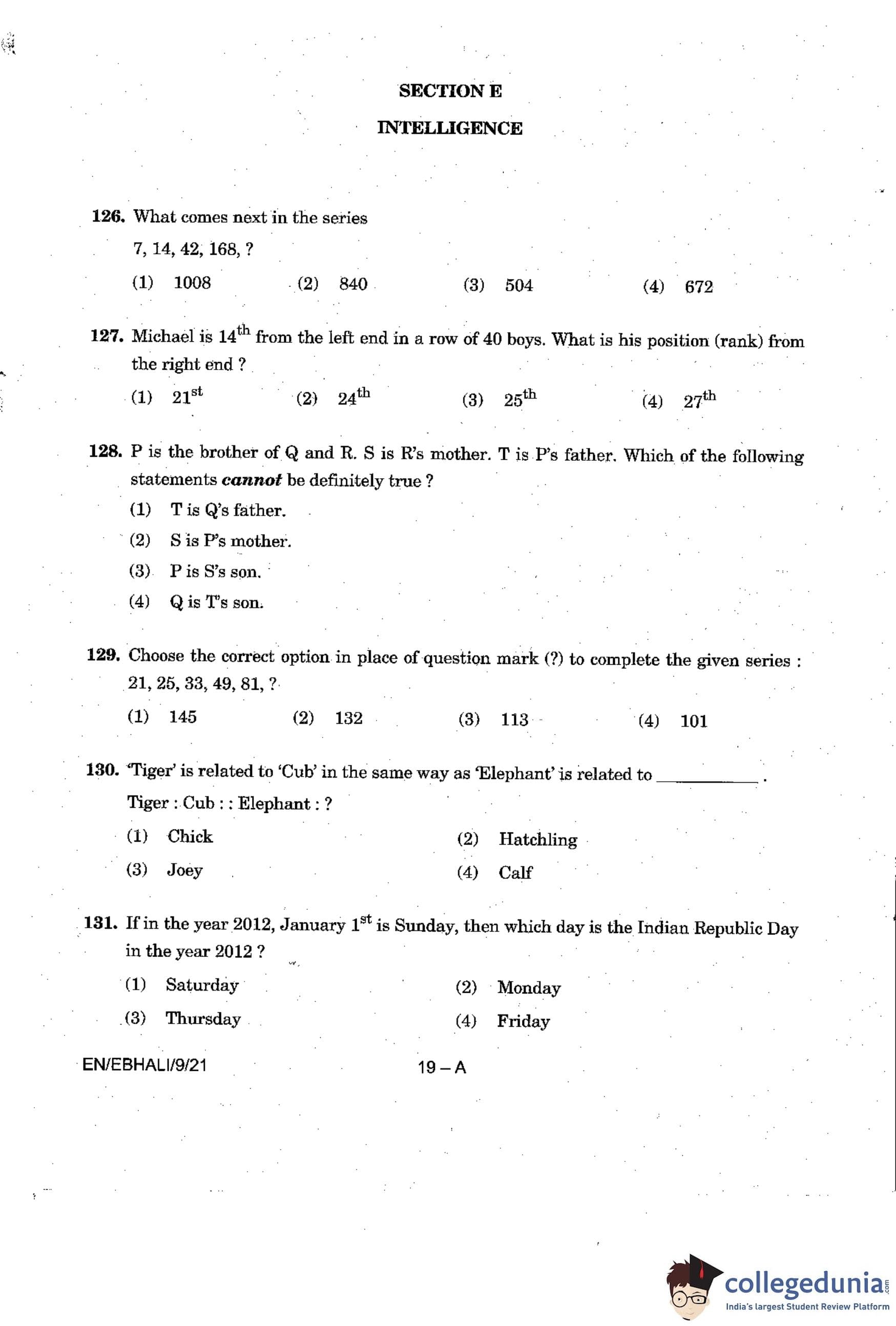AISSEE 2021 Question Paper with Answer Key Class 9 (Set A)