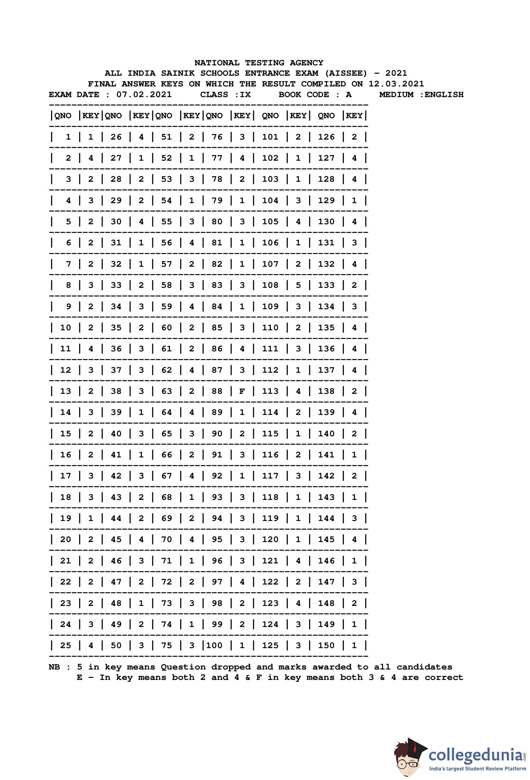 AISSEE 2021 Question Paper with Answer Key Class 9 (Set A) is available for download here. AISSEE 2023 was successfully conducted by National Testing Agency (NTA) on February 7, 2021. The question paper comprised a total of 150 questions divided among 5 sections.