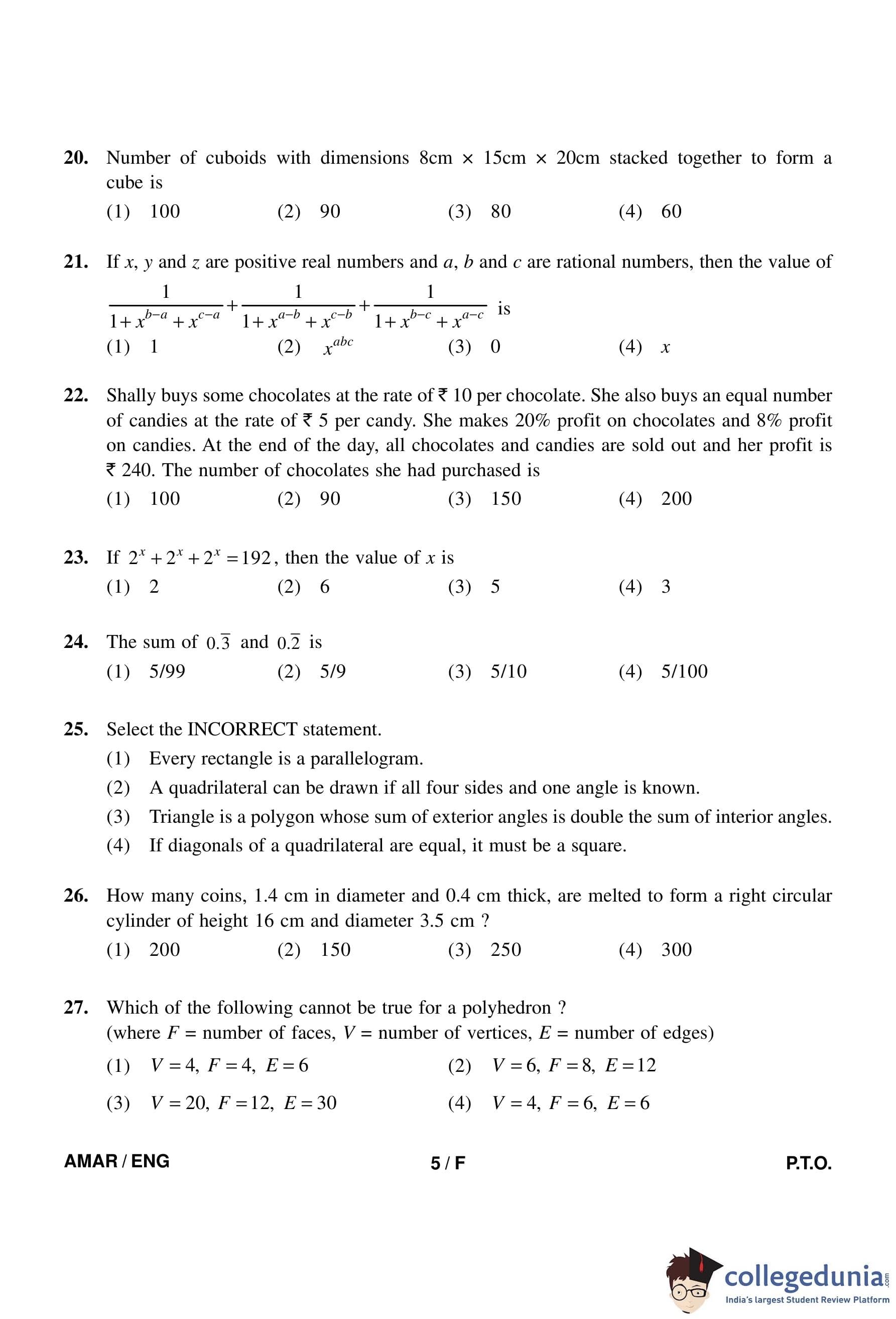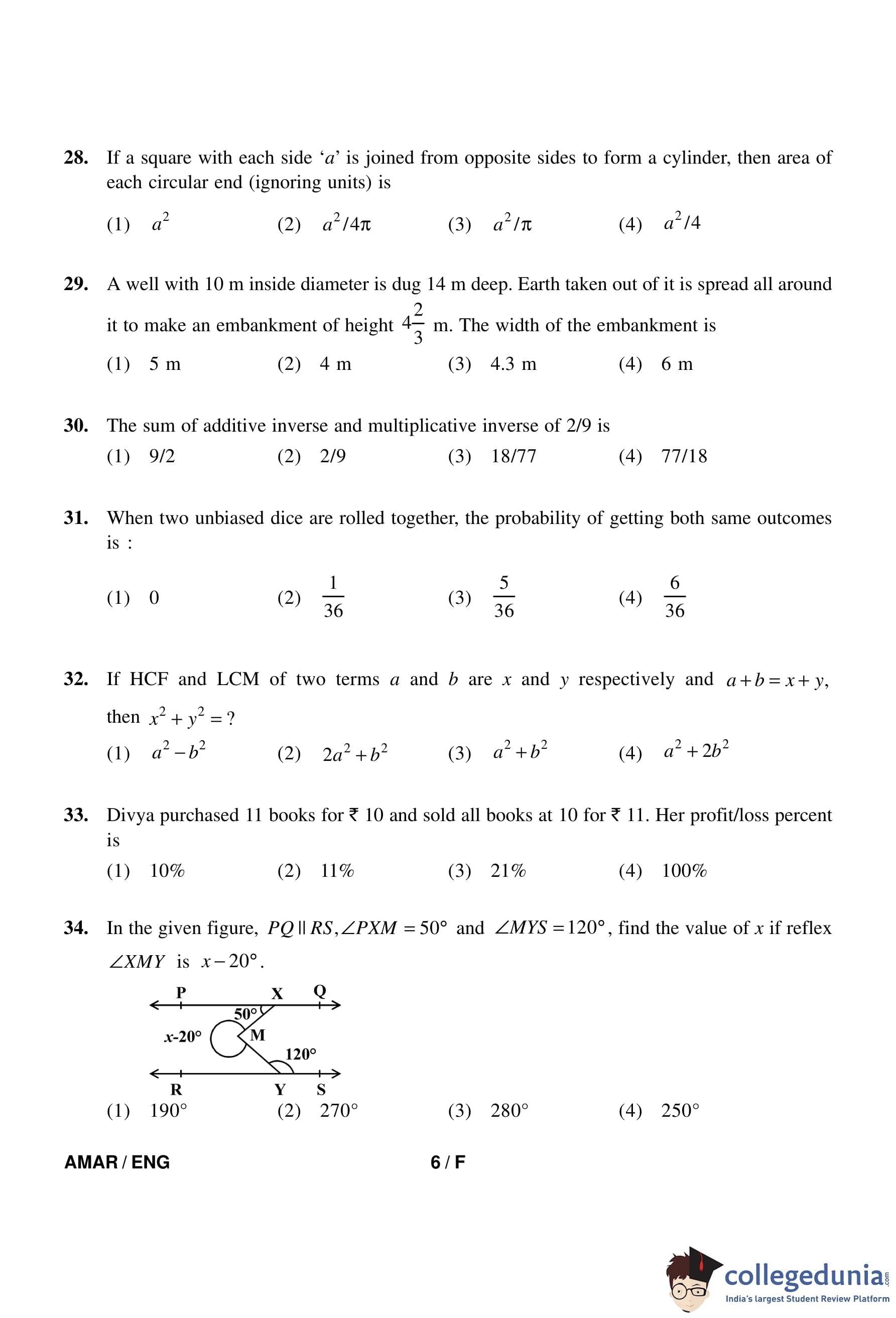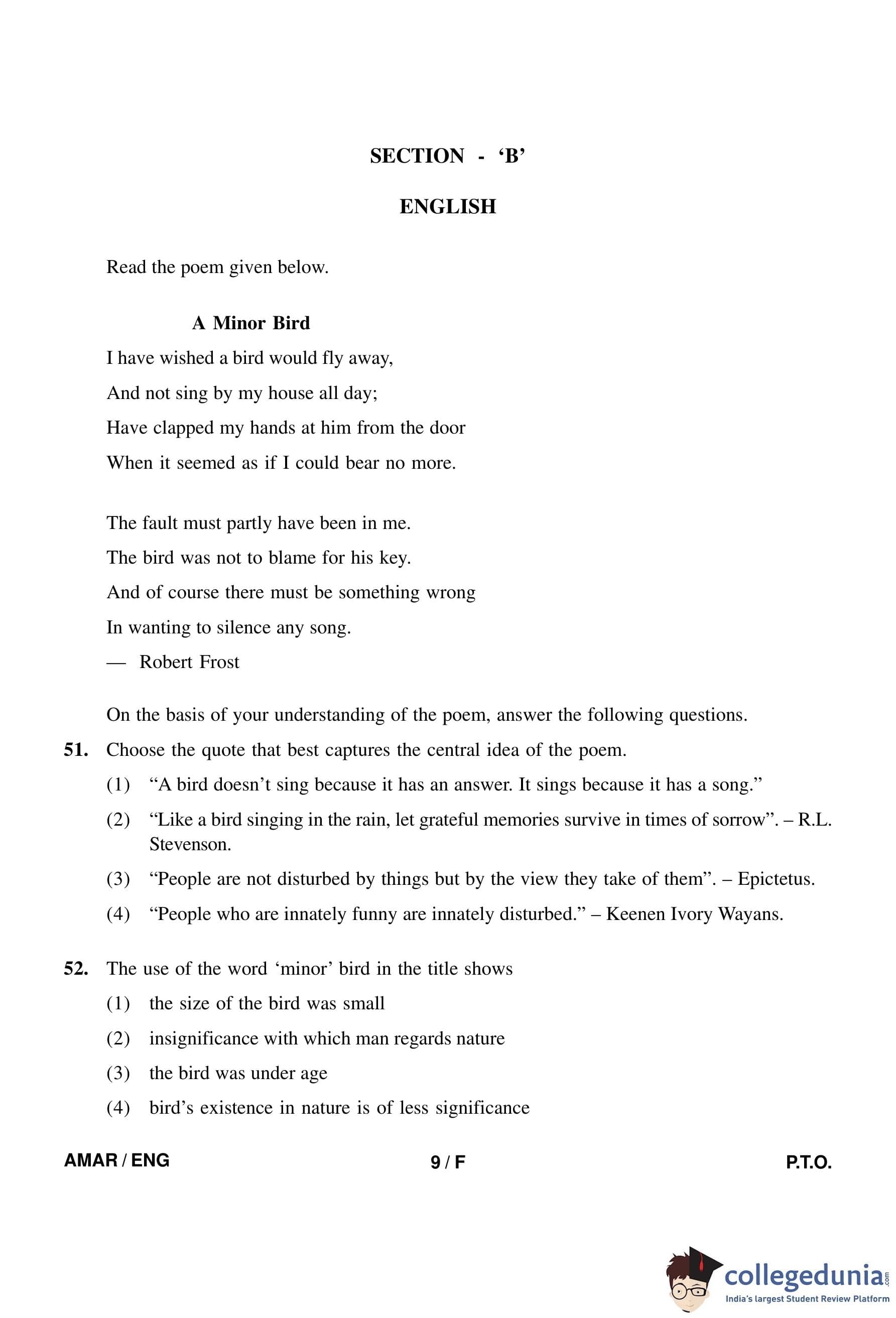 AISSEE 2022 Question Paper with Answer Key Class 9 (Set F)