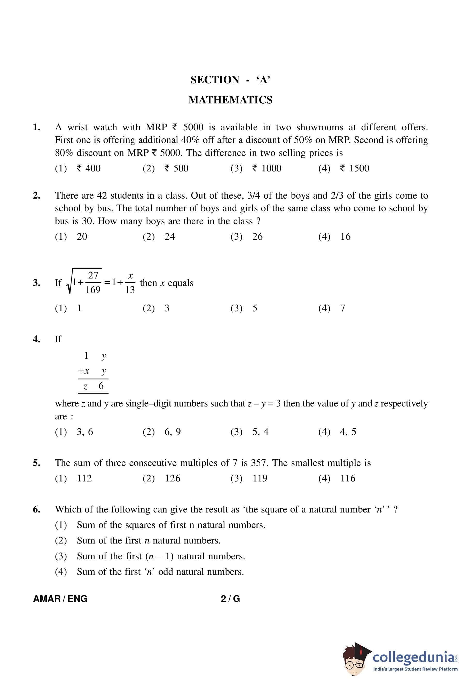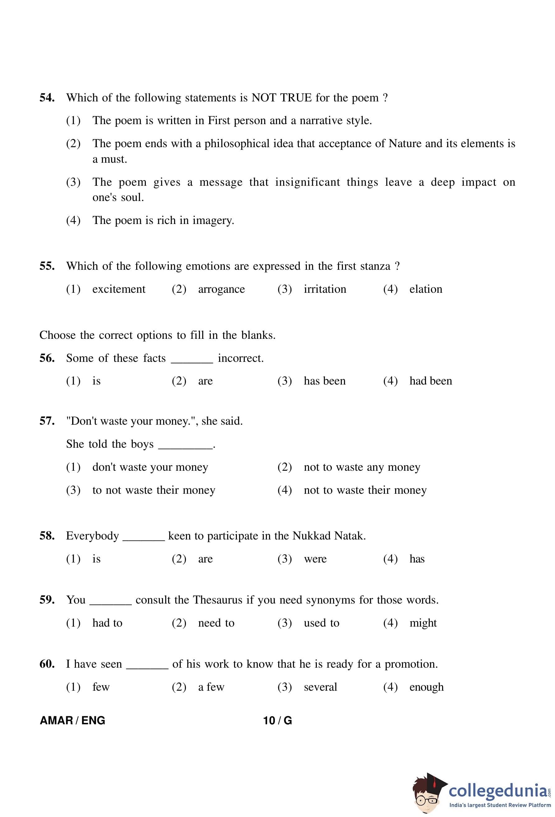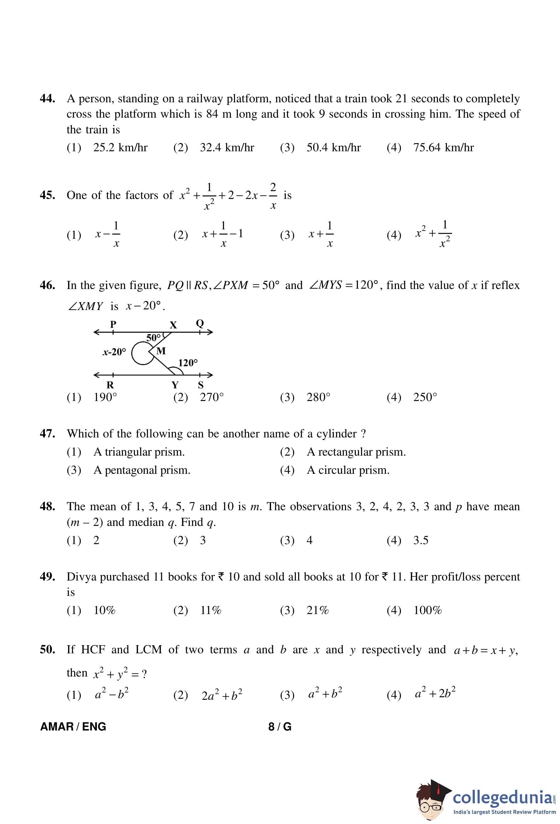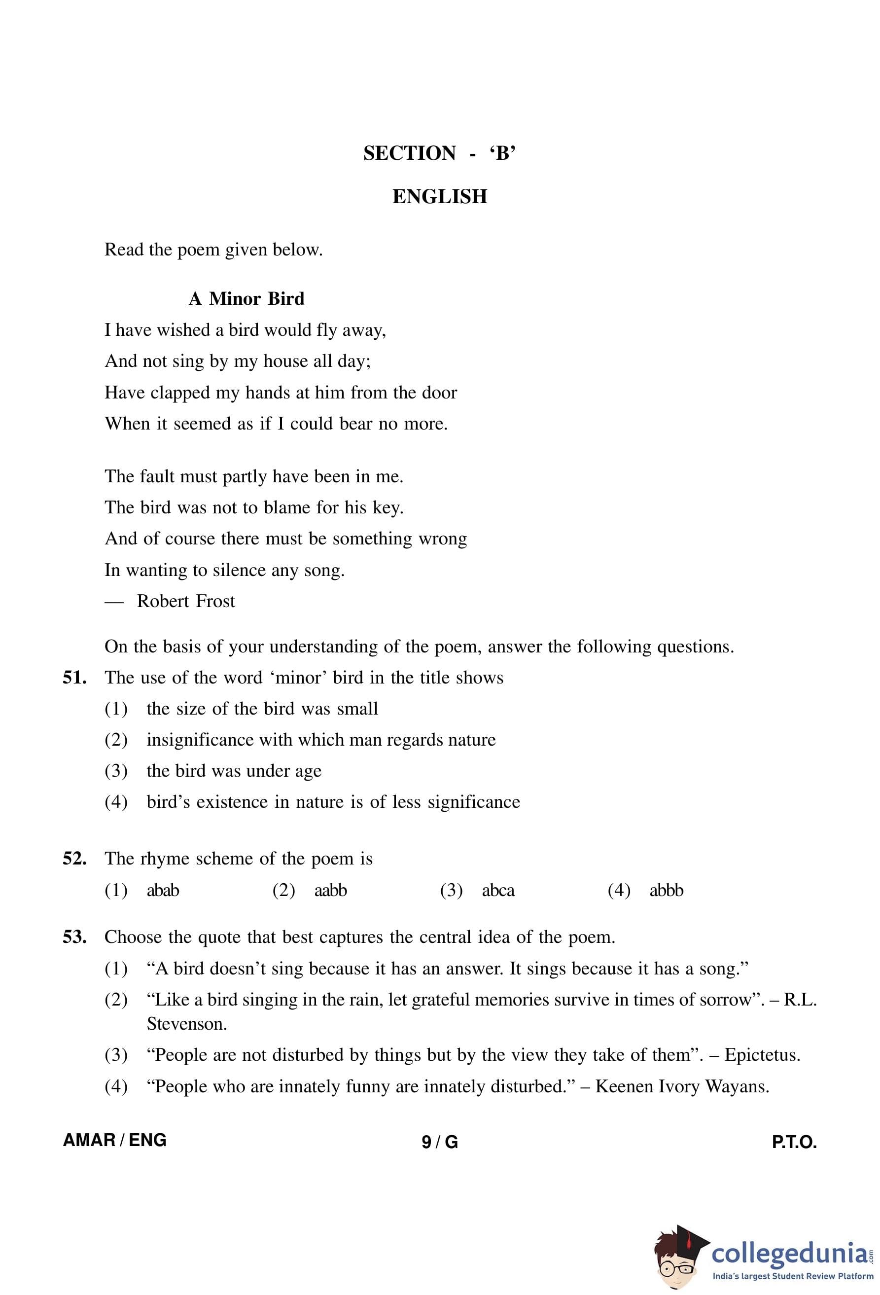 AISSEE 2022 Question Paper with Answer Key Class 9 (Set G)