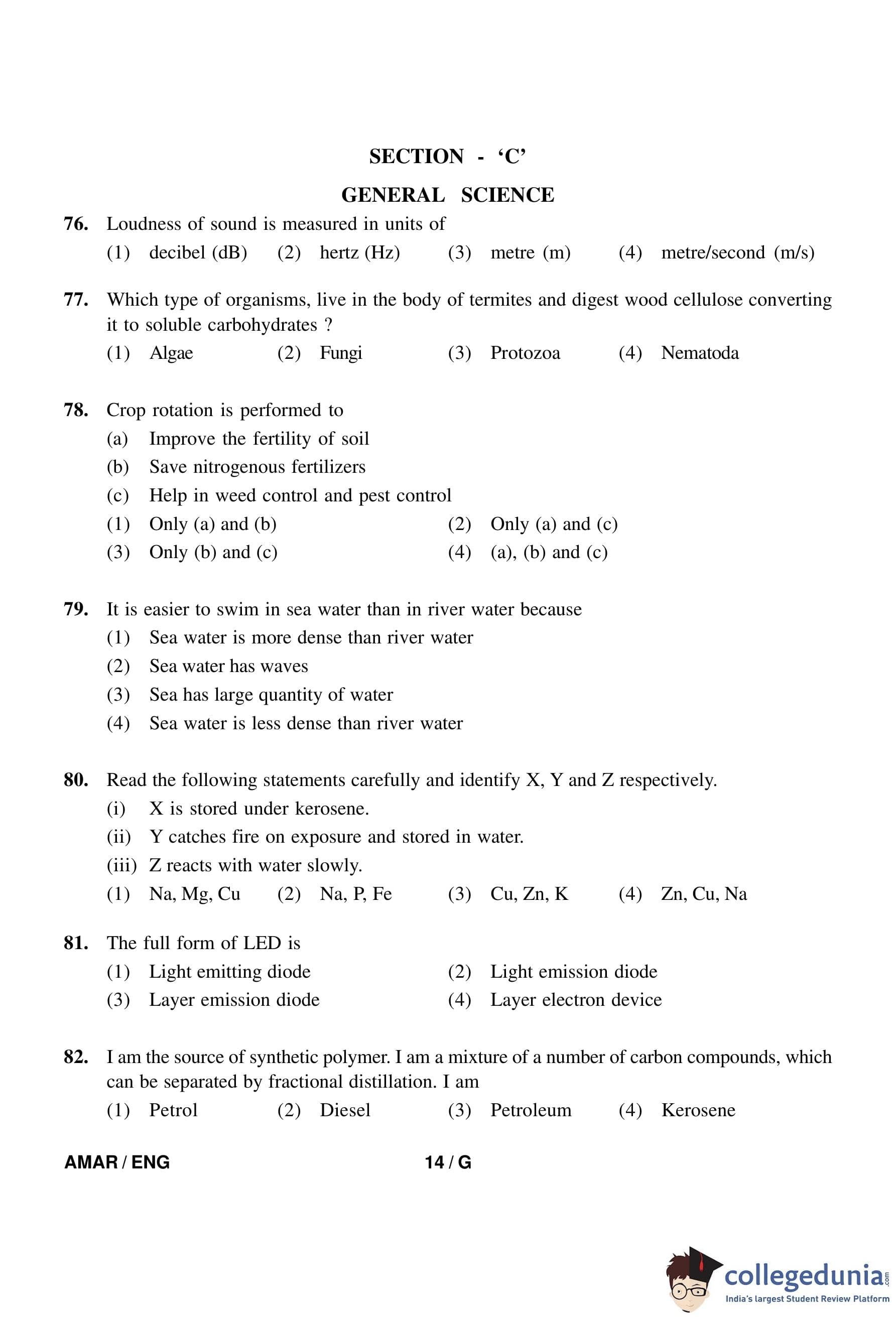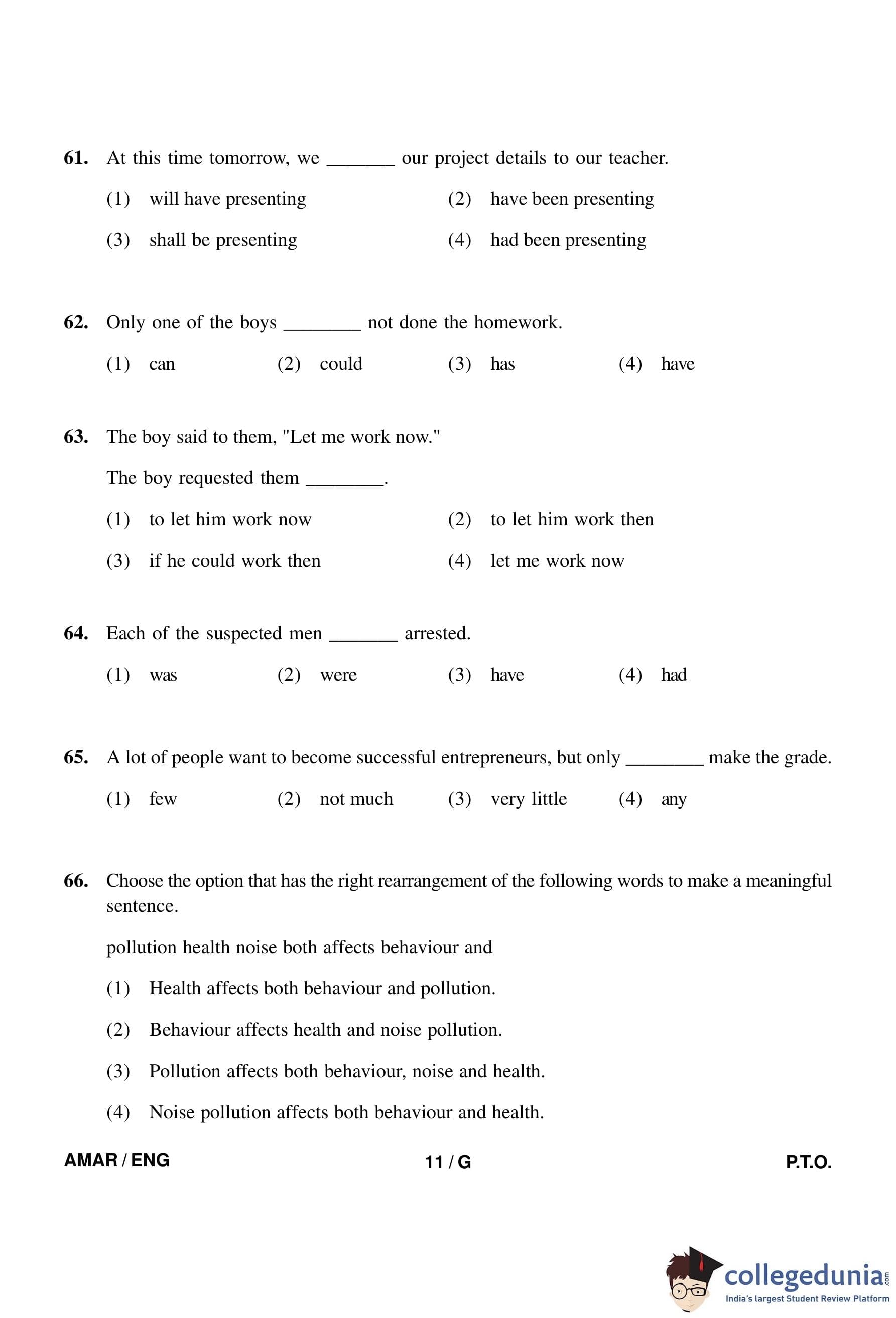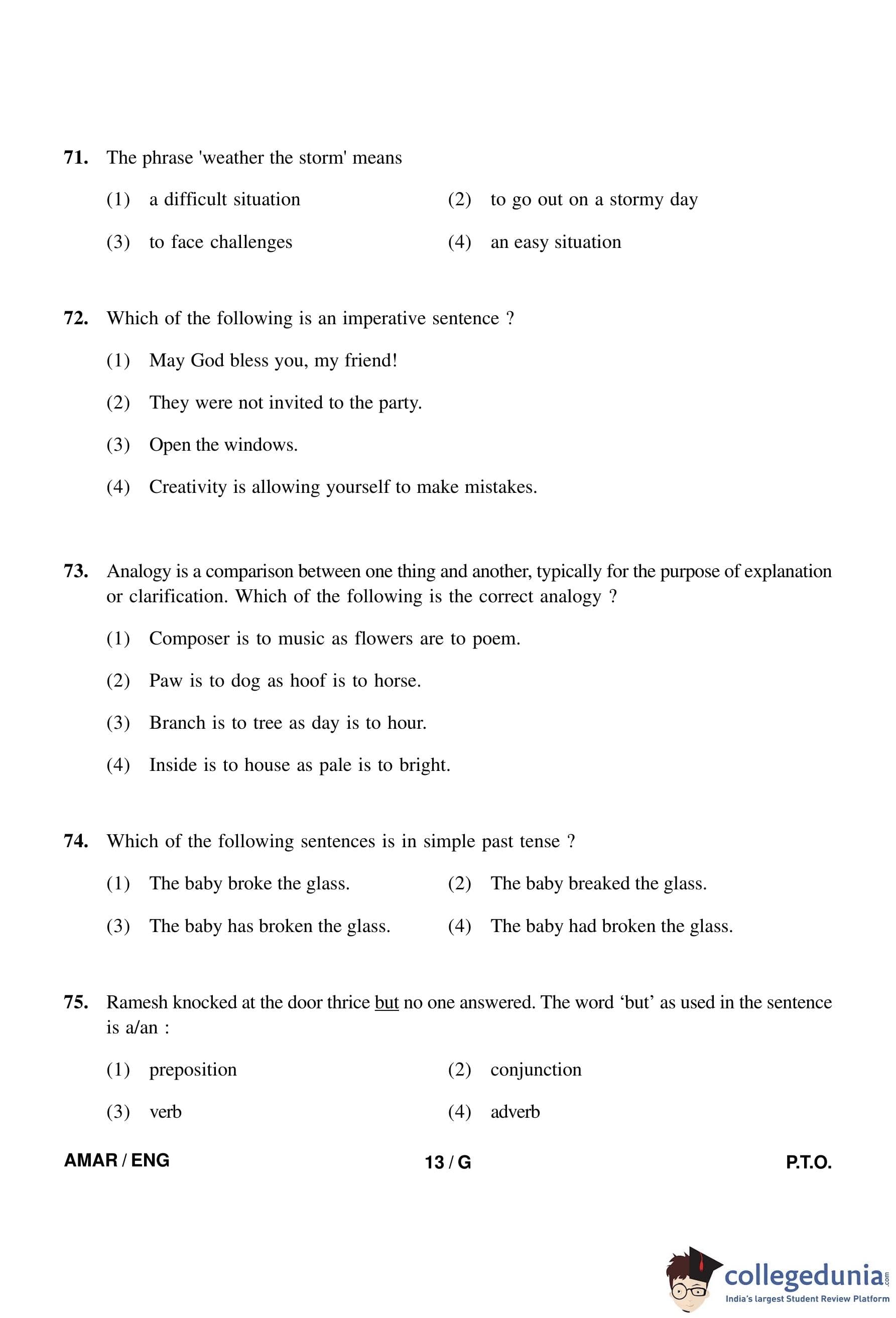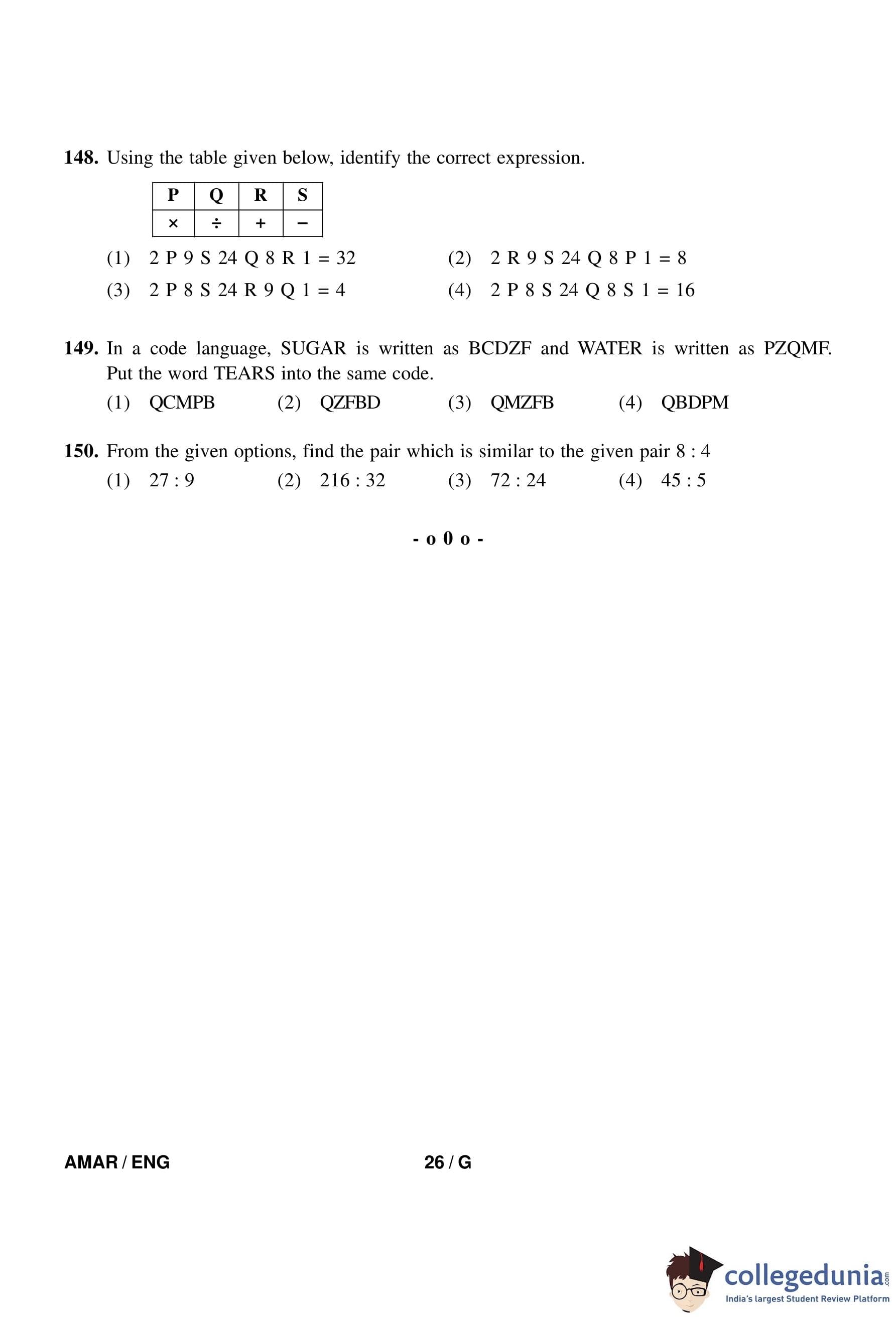 AISSEE 2022 Question Paper with Answer Key Class 9 (Set G)