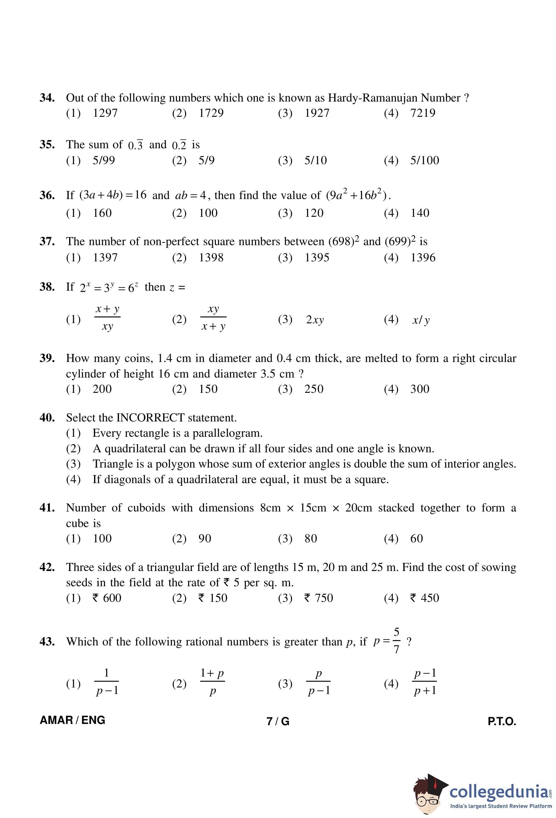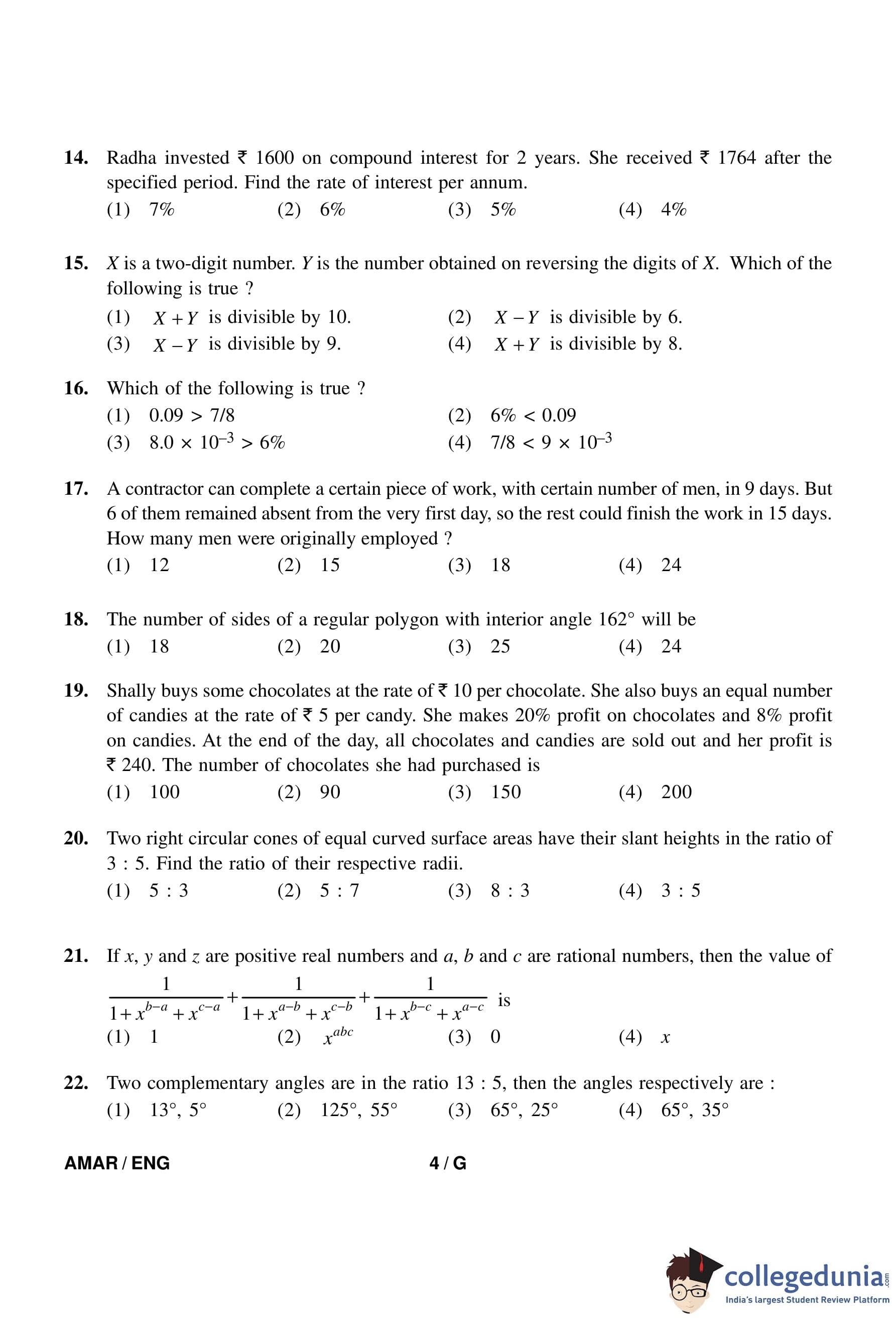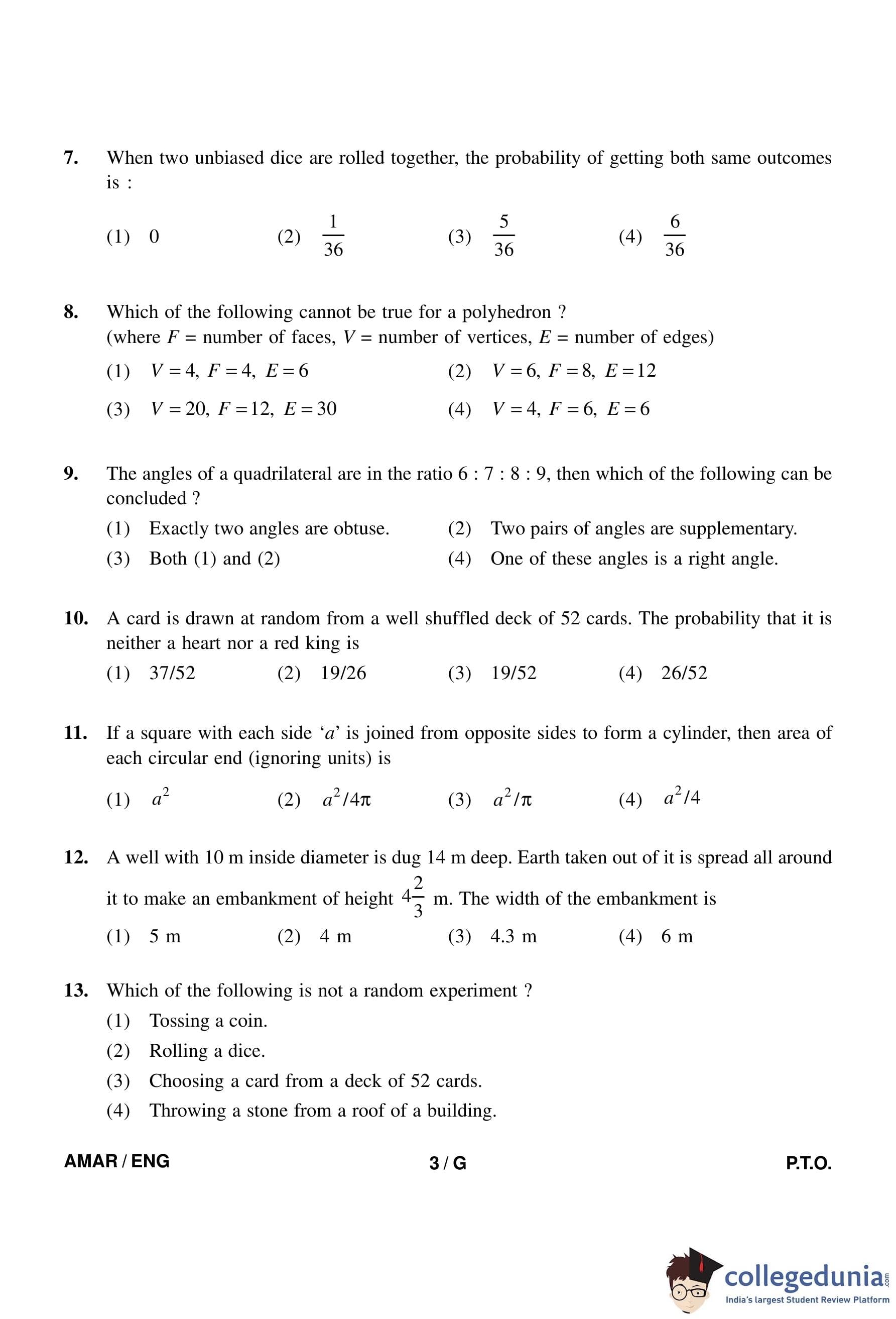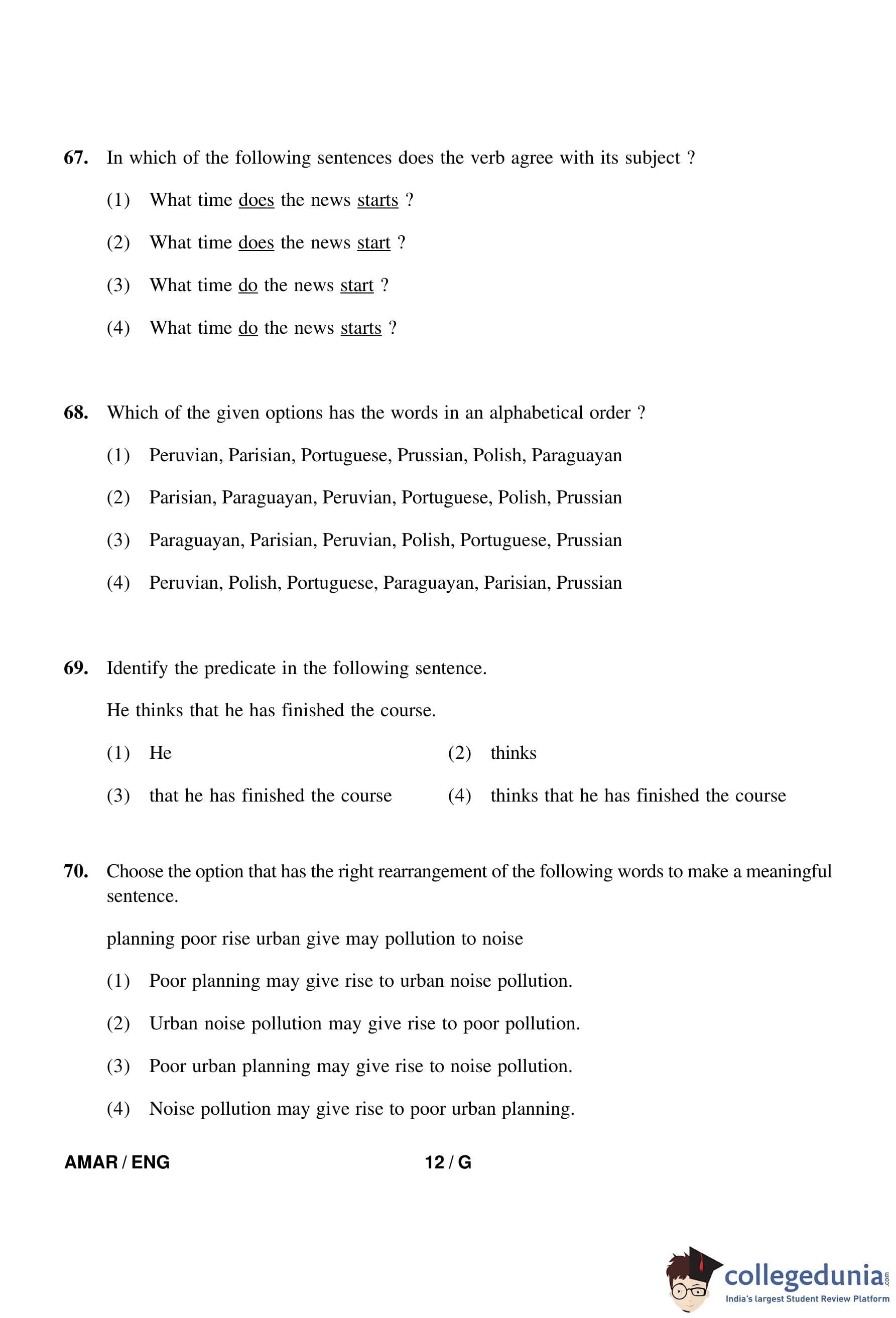 AISSEE 2022 Question Paper with Answer Key Class 9 (Set G)