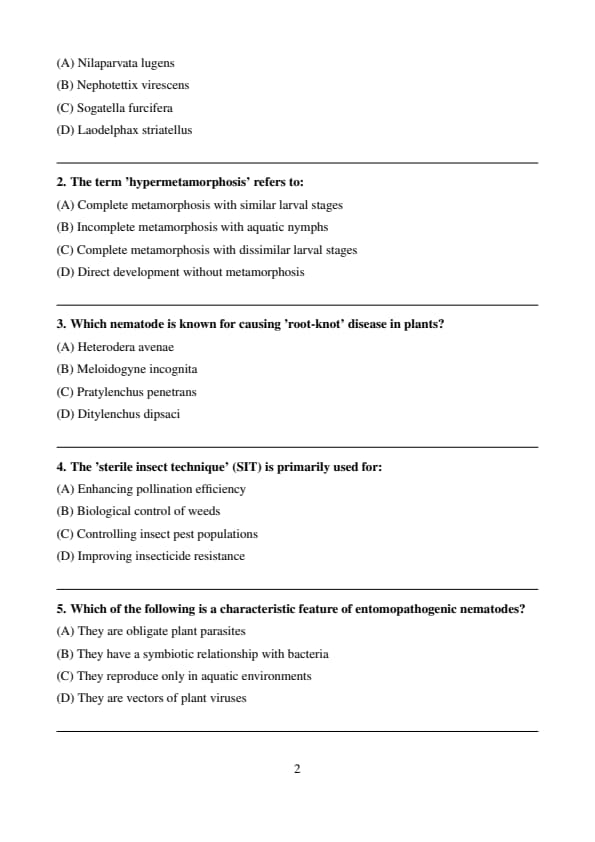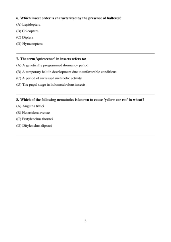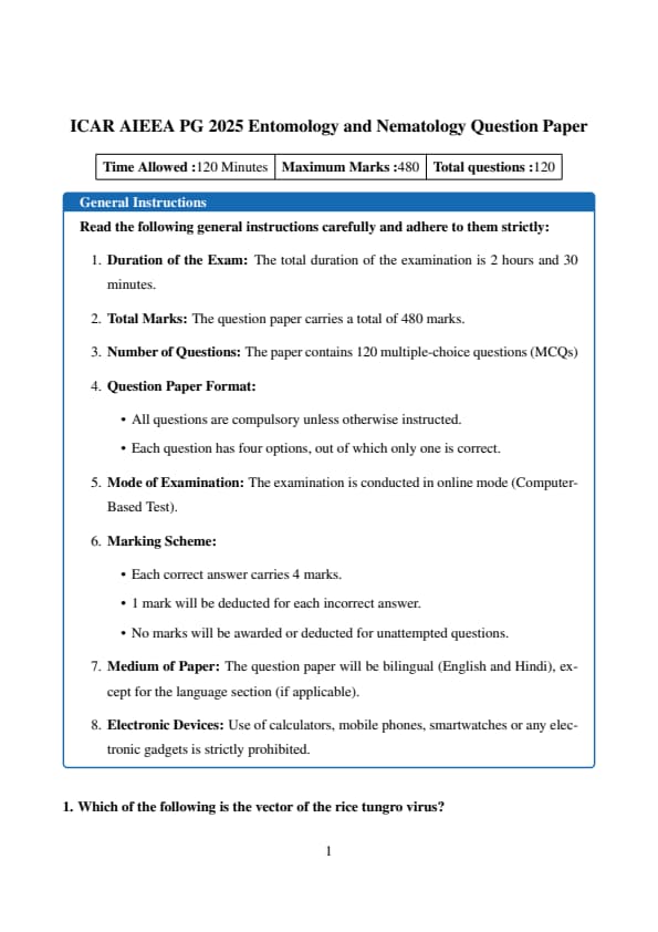 The exam evaluates candidates on their subject understanding, practical application, and analytical skills. It consists of MCQ’s from topics related to insect taxonomy, pest management, insect ecology, nematode biology, biological control, and other key areas in entomology and nematology.