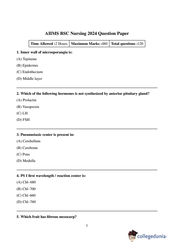 AIIMS 2024 B.Sc. Nursing Question Paper is available here for download. The All India Institute of Medical Sciences (AIIMS), New Delhi conducted 2024 B.Sc. Nursing exam on June 8 and June 9 in Computer-Based Test (CBT) mode. AIIMS BSc Nursing Question Paper 2024 consists of 100 MCQ-based questions in total to be attempted in the duration of 2 hours. Candidates can check and download the question paper pdf and solutions pdf from the below links