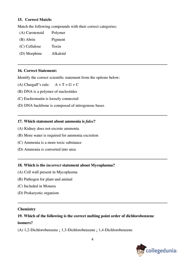 Abrin – A toxic protein, not a pigment. Hence, incorrect match.