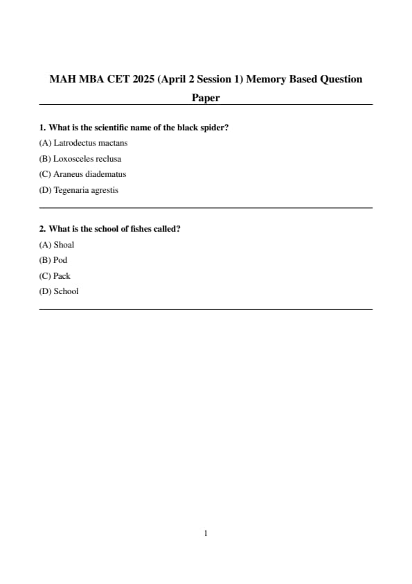 | MAH MBA CET 2025 Question Paper April 2 Session 1 | Download PDF | Check Solution |