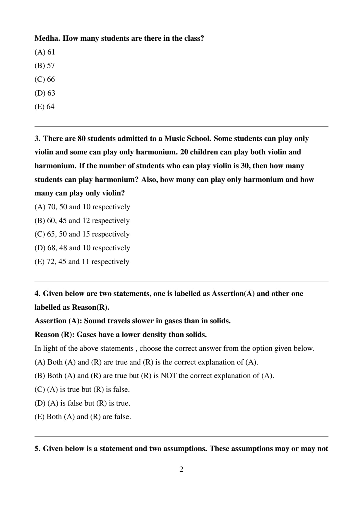 These questions are based on the following information, read the comprehension carefully to answer the given questions: