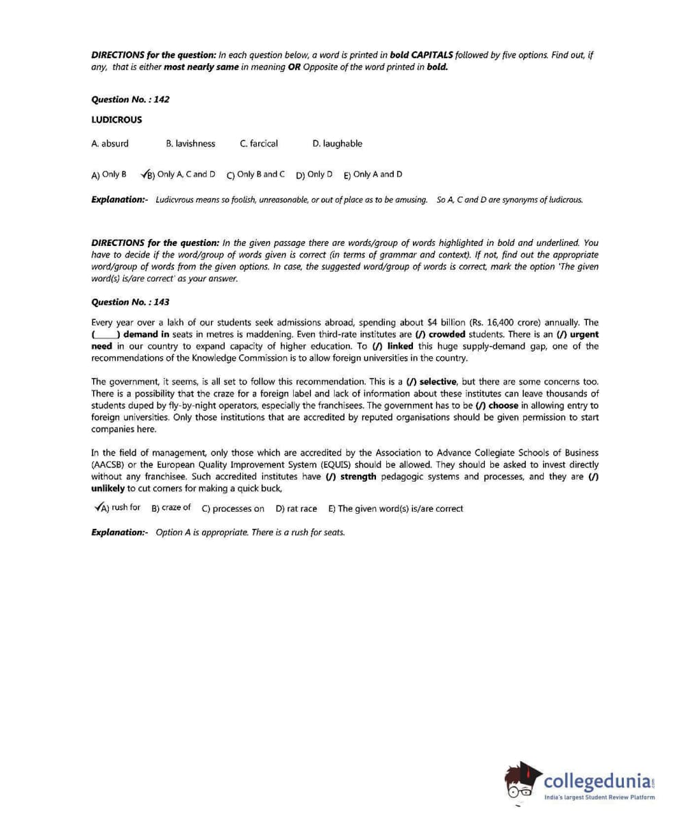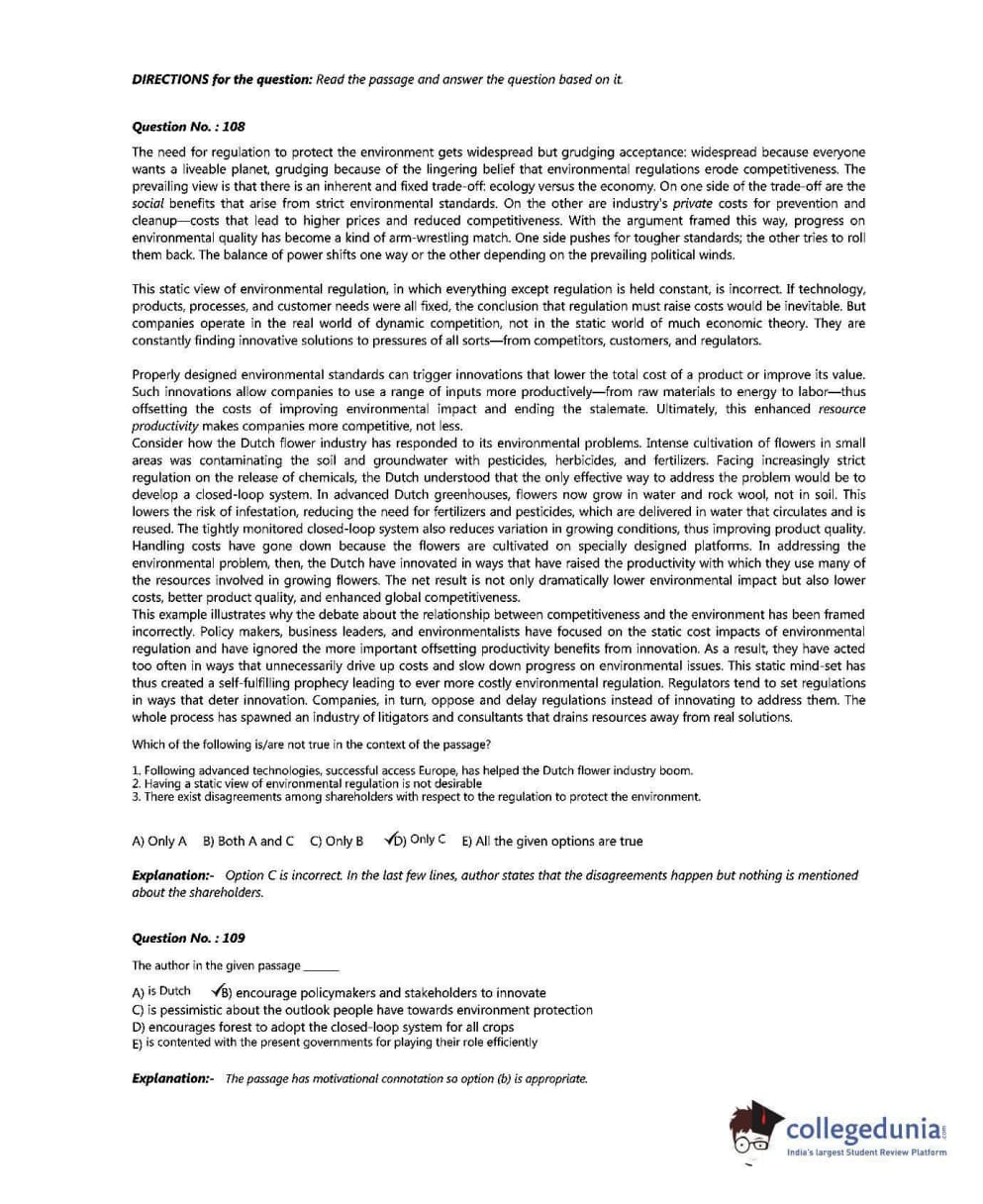 MAHCET 2017 Verbal Usage & Reading Comprehension Question Paper with Answer Key PDFs