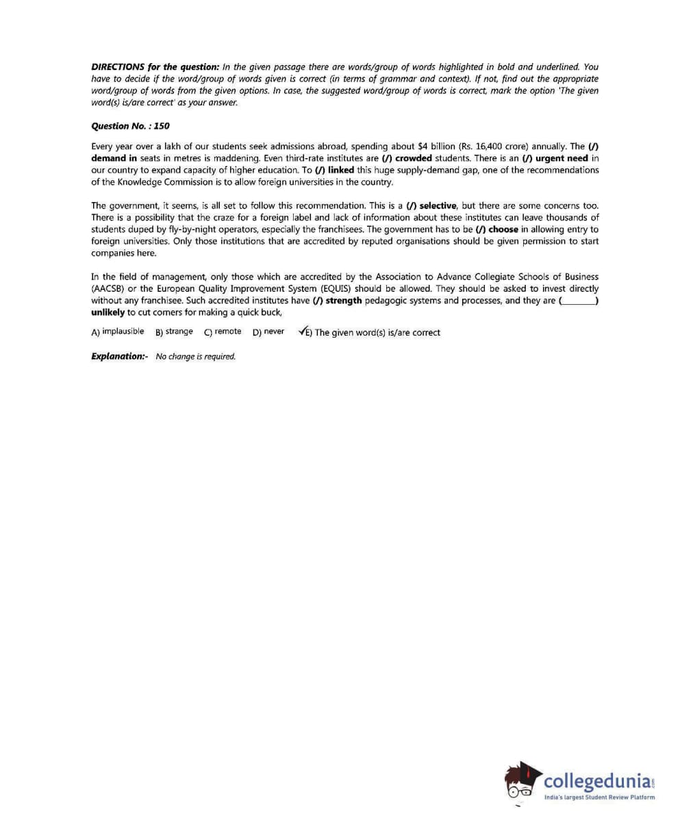 MAHCET 2017 Verbal Usage & Reading Comprehension Question paper with answer key pdf conducted on March 4, 2017 is available for download. The exam was successfully organized by Directorate of Technical Education Maharahstra. In terms of difficulty level, MAHCET was of Moderate level. The question paper comprised a total of 50 questions.