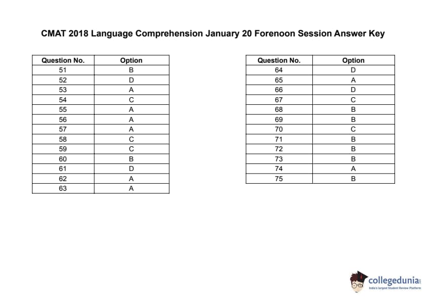 CMAT 2018 Language Comprehension Question Paper with Answer Key PDFs Forenoon Session