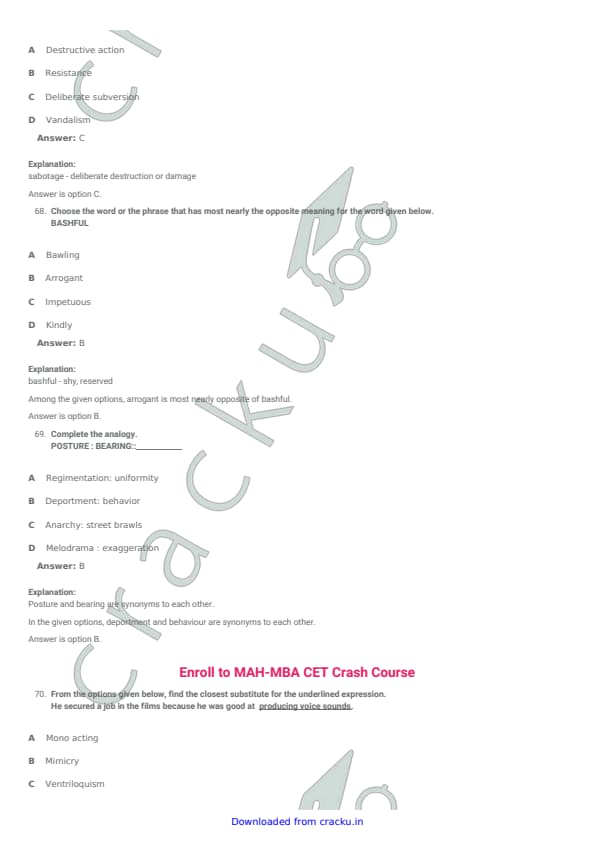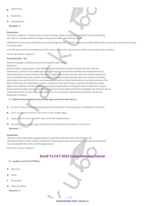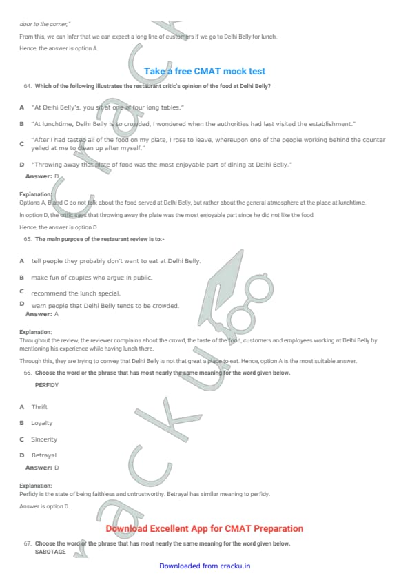 | CMAT 2018 Language Comprehension Question Paper with Solutions PDF | Download PDF | Check Solutions |