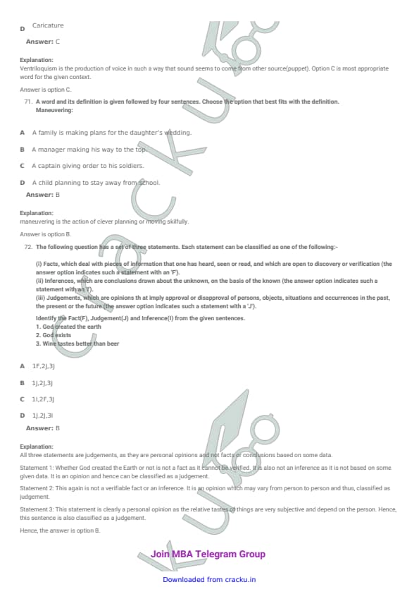 Quick Tip: Taste preferences and belief statements are usually Judgements, while conclusions drawn without direct verification are Inferences.