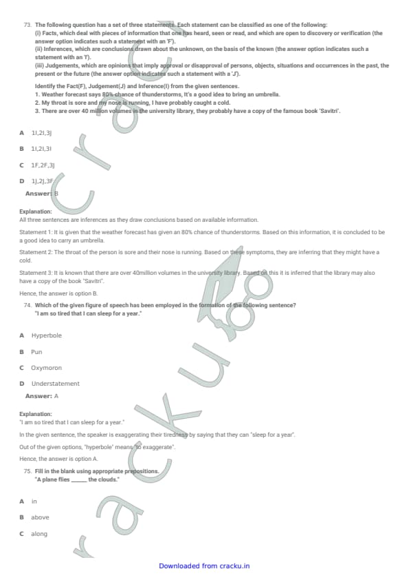 (ii) Inferences, which are conclusions drawn about the unknown, on the basis of the known (the answer option indicates such a statement with a 'I').