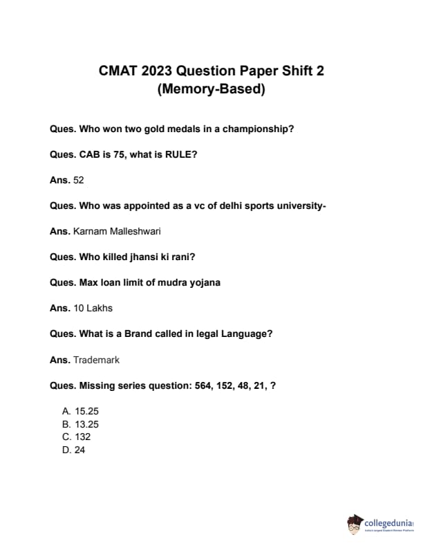 | CMAT 2023 Answer Key PDF | CMAT 2023 Question Paper PDF |