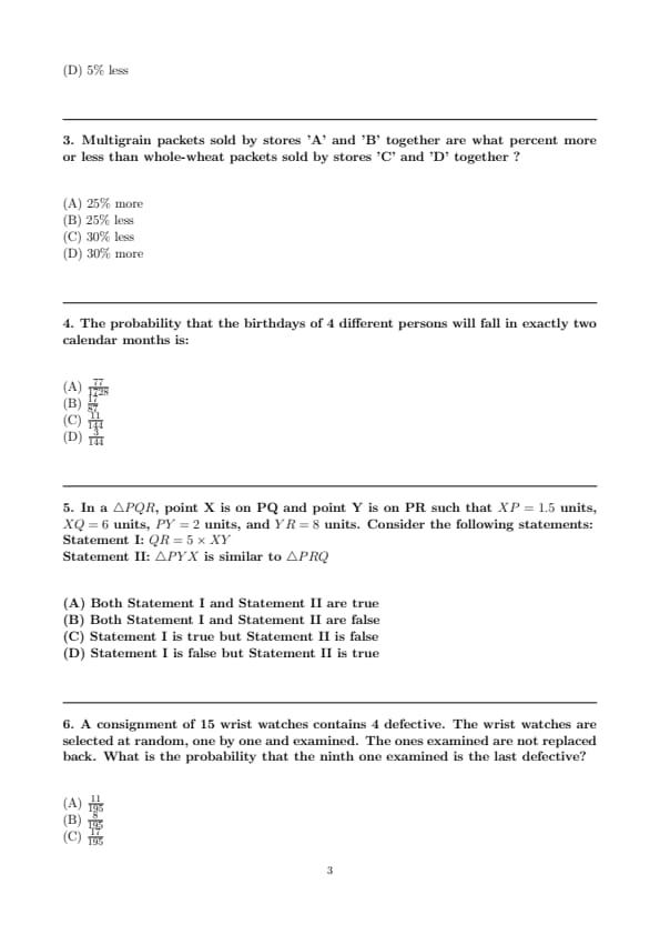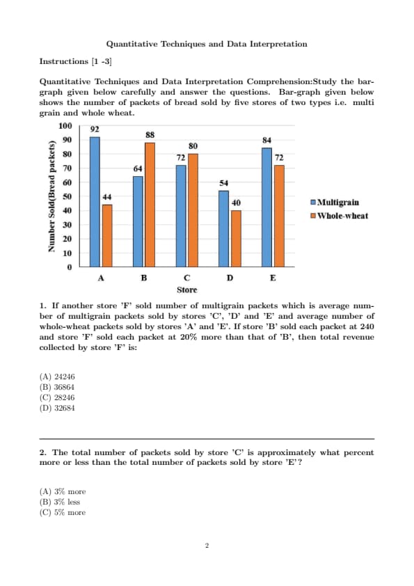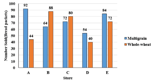 The percentage difference between the total number of multigrain packets sold and the total number of whole-wheat packets sold is calculated as: \[ Percentage difference = \left( \frac{(A + B) - (C + D)}{(C + D)} \right) \times 100 \]