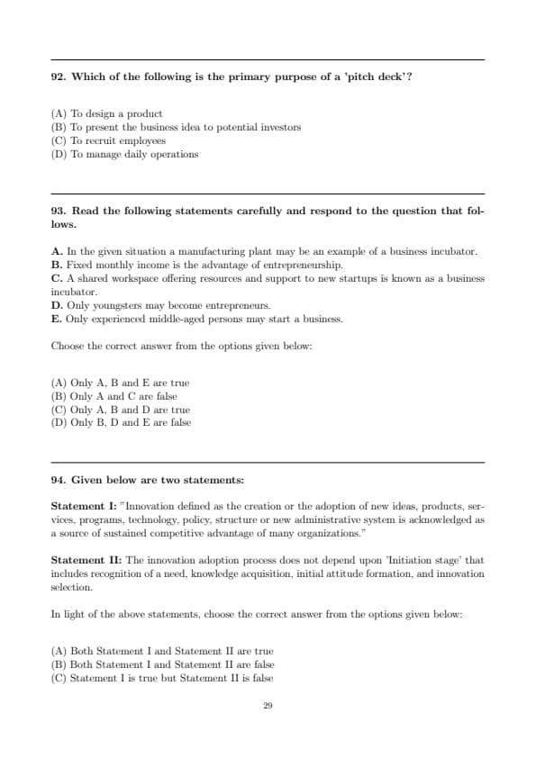 - D. Entrepreneurs can be of any age, and there is no age restriction for becoming one. This statement is false.