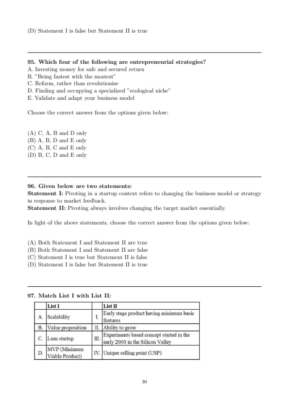 Statement I: Pivoting in a startup context refers to changing the business model or strategy in response to market feedback.