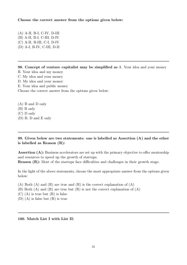 Assertion (A): Business accelerators are set up with the primary objective to offer mentorship and resources to speed up the growth of startups.