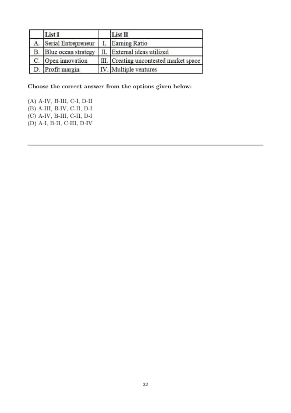 - Serial Entrepreneur refers to someone who engages in multiple ventures, so A matches with IV.