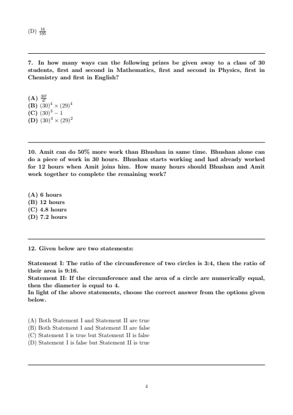 Statement II: If the circumference and the area of a circle are numerically equal, then the diameter is equal to 4.