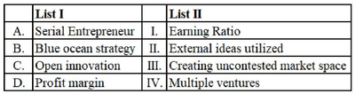 - Open innovation involves utilizing external ideas, so C matches with II.