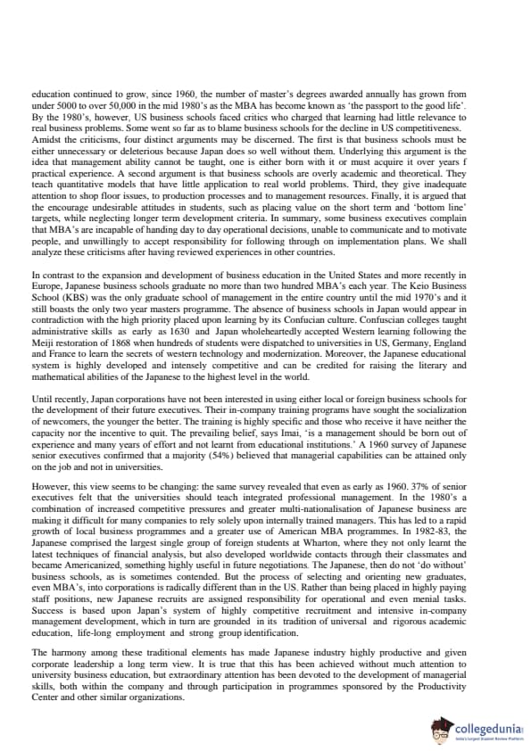 The Japanese were initially able to do without business schools as a result of