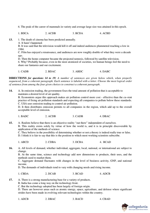 | CAT 2019 Question Papers | CAT 2018 Question Papers | CAT 2017 Question Papers |