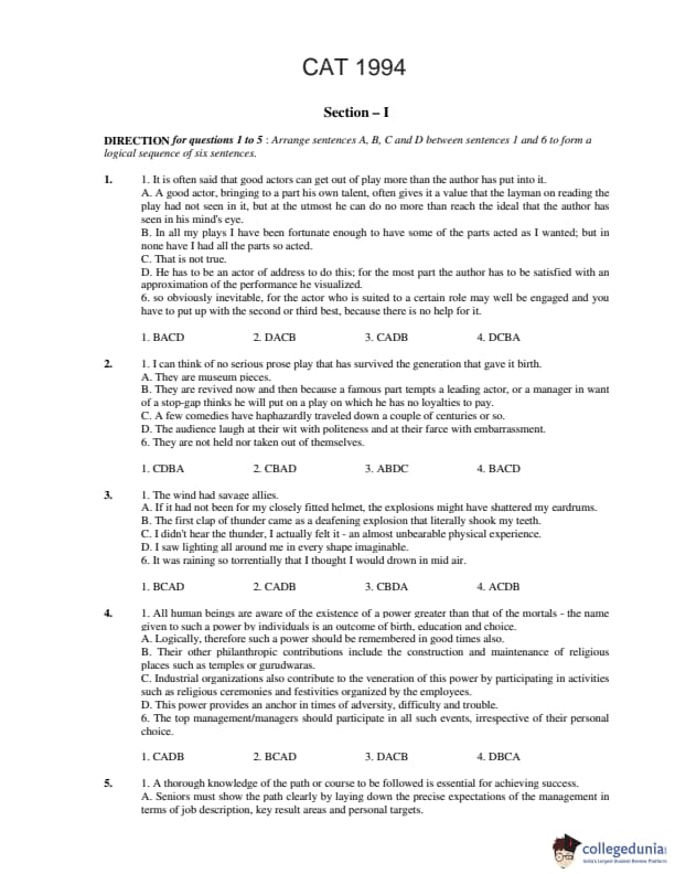 | CAT 1994 Question Paper with Answer Key | Download PDF | Check Solutions |