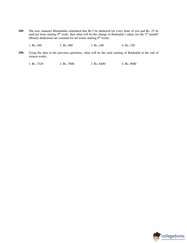 Referring to the data given in Q.187, Bankatlala’s average monthly salary at the end of the first four months will be: