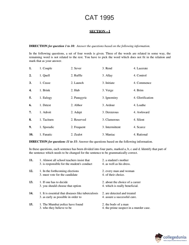 | CAT 1995 Question Paper with Answer Key | Download PDF | Check Solutions |